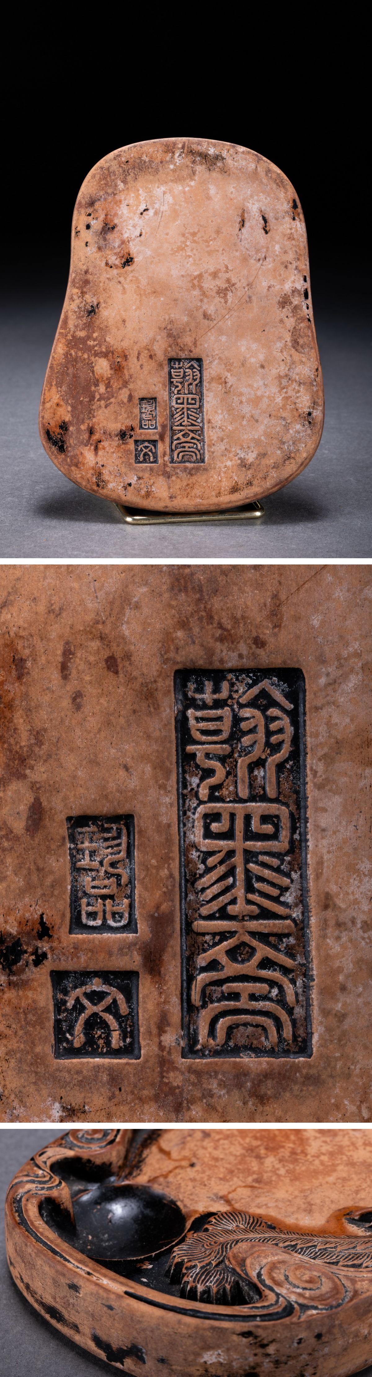 【華】時代舊藏 清時代 紫砂朱泥「翰墨斎」在銘 鳳鳥文文房硯 時代物 古美術 骨董品A25070303-QR