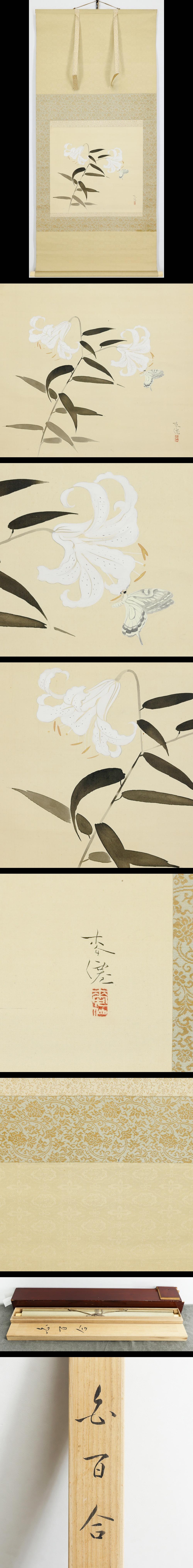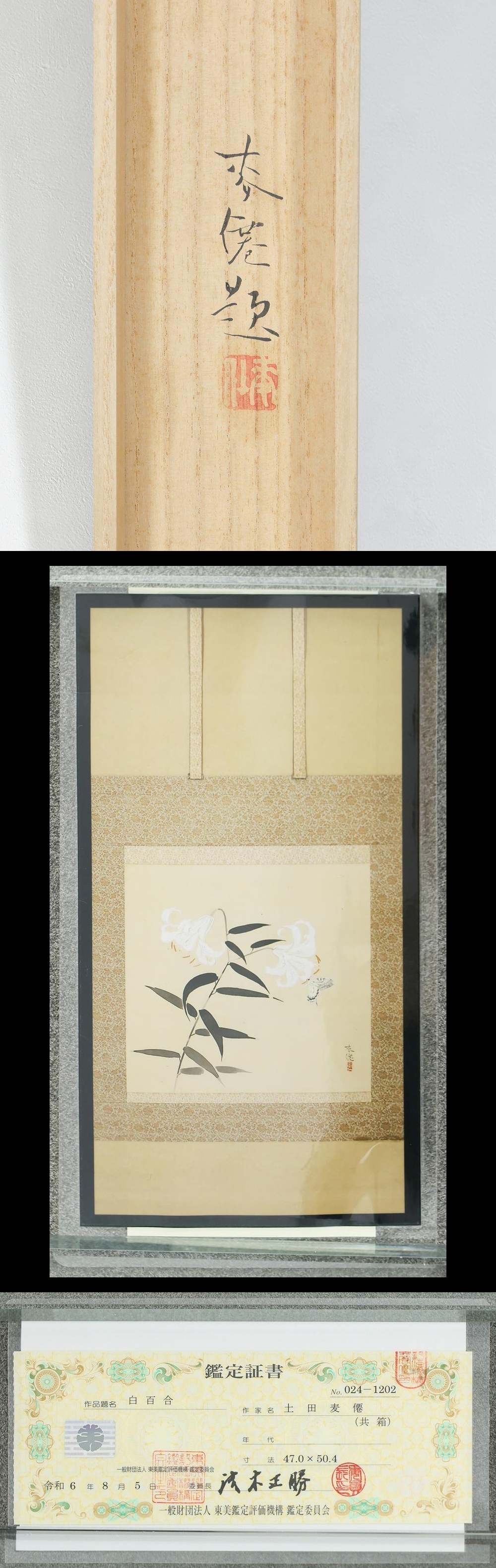 【真作】【WISH】土田麦僊「白百合」日本画 掛軸 絹本 共箱二重箱 ◆東京美術倶楽部鑑定書付 優雅に咲く白、永遠の調べ #25100007 收藏