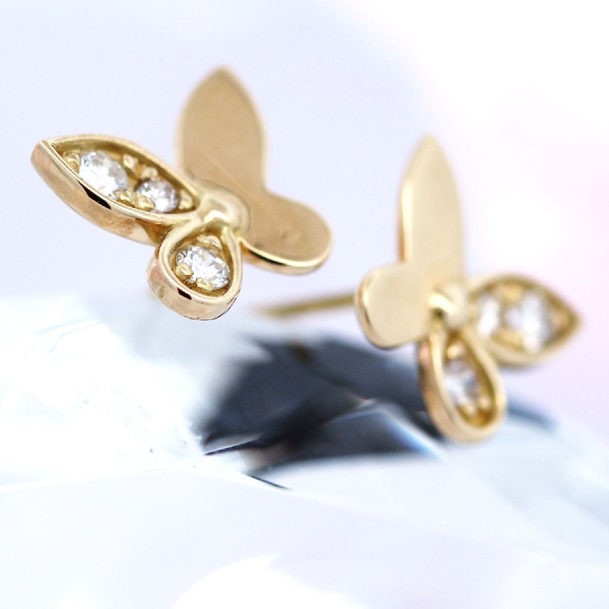 ★ダイヤモンド0.14ct★K18YG◆バタフライ◆蝶々◆かわいい◆フェミニン◆4月誕生石◆スタッドピアス【送料無料】 收藏