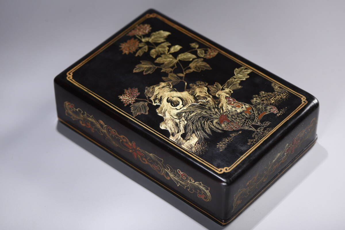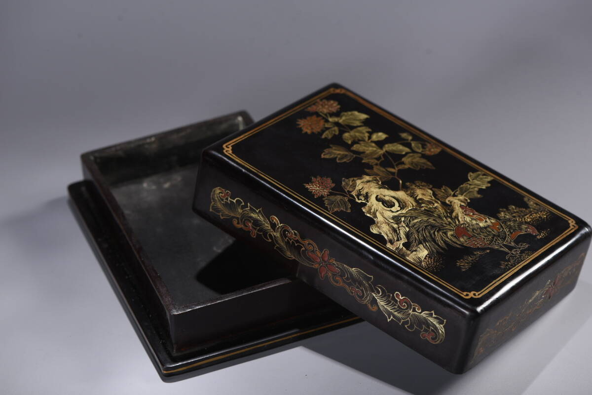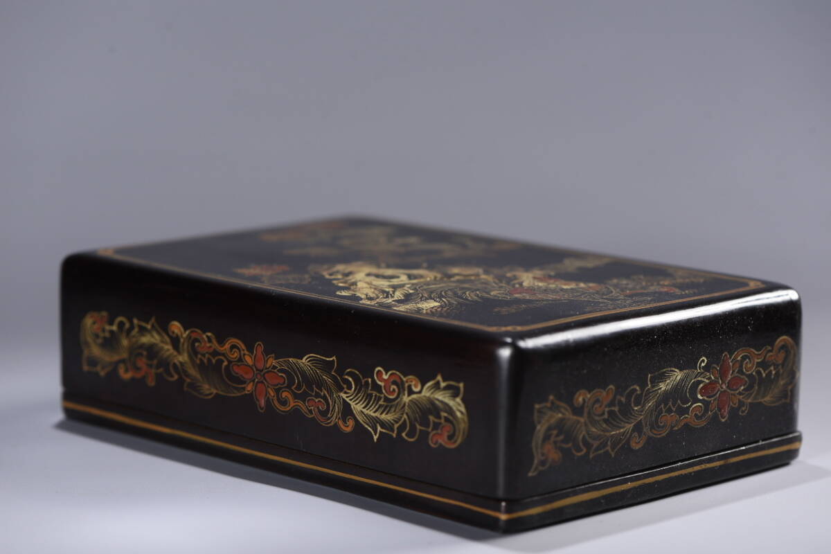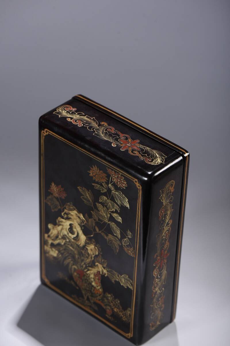 【仁】『木胎漆器彫・描真金・花卉紋・文房盒・置物・賞物』極細工 古賞物 中国古玩 古美術 古美味 收藏