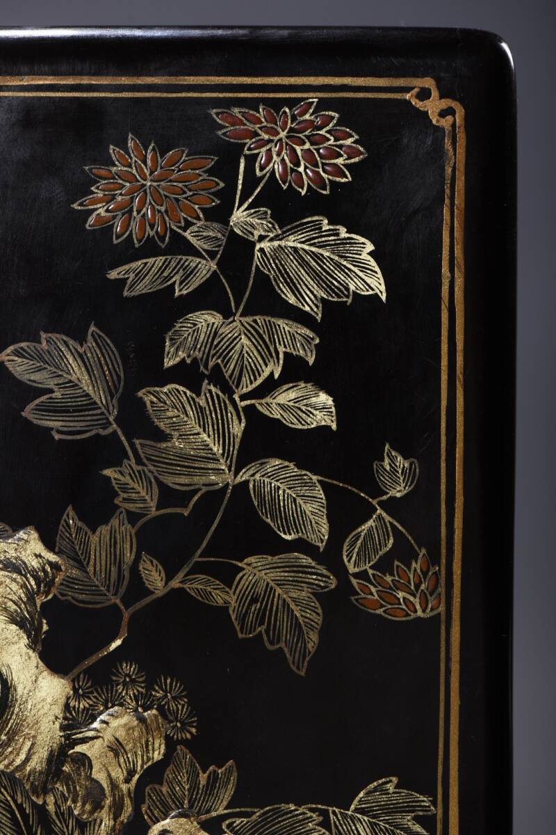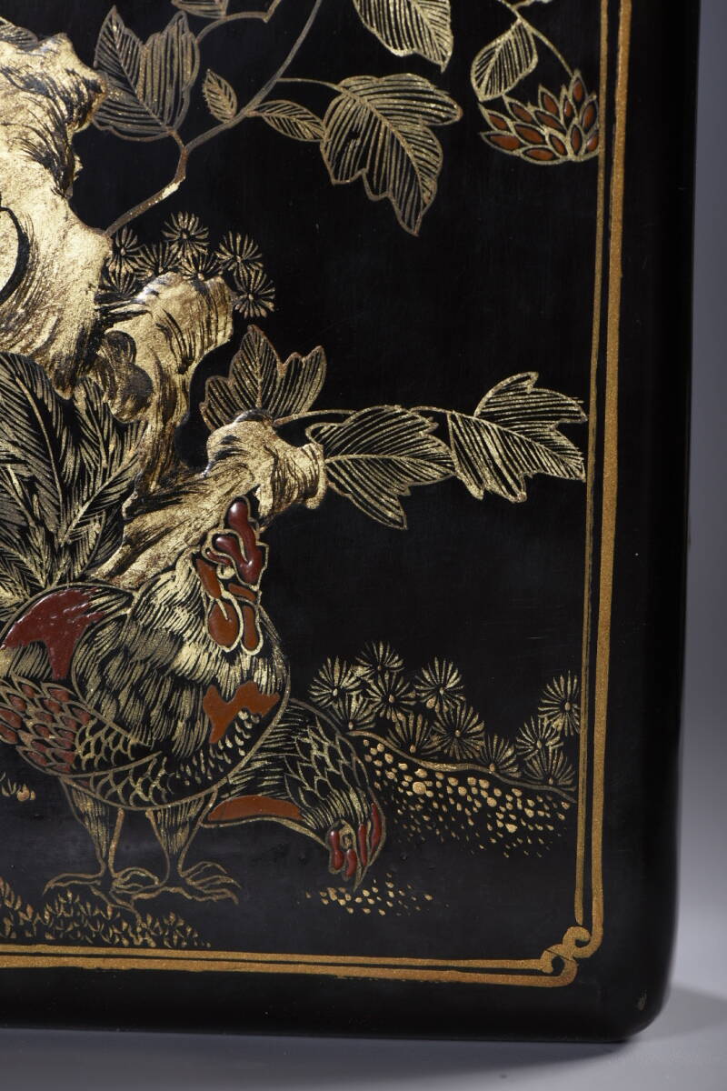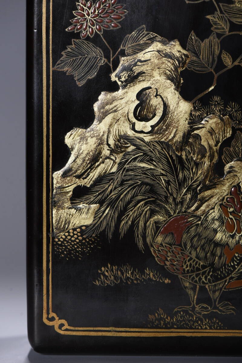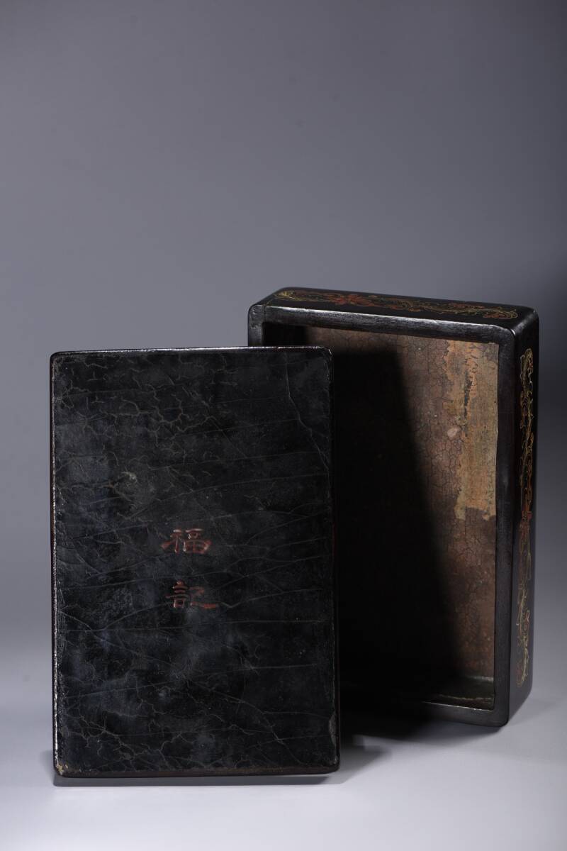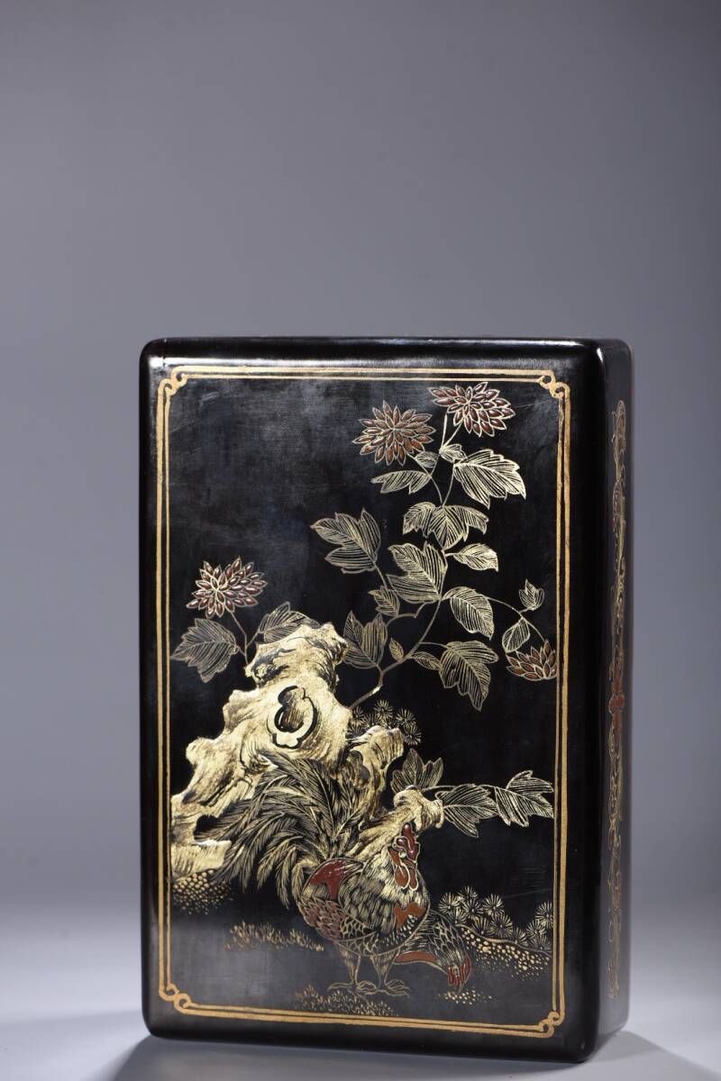 【仁】『木胎漆器彫・描真金・花卉紋・文房盒・置物・賞物』極細工 古賞物 中国古玩 古美術 古美味 收藏