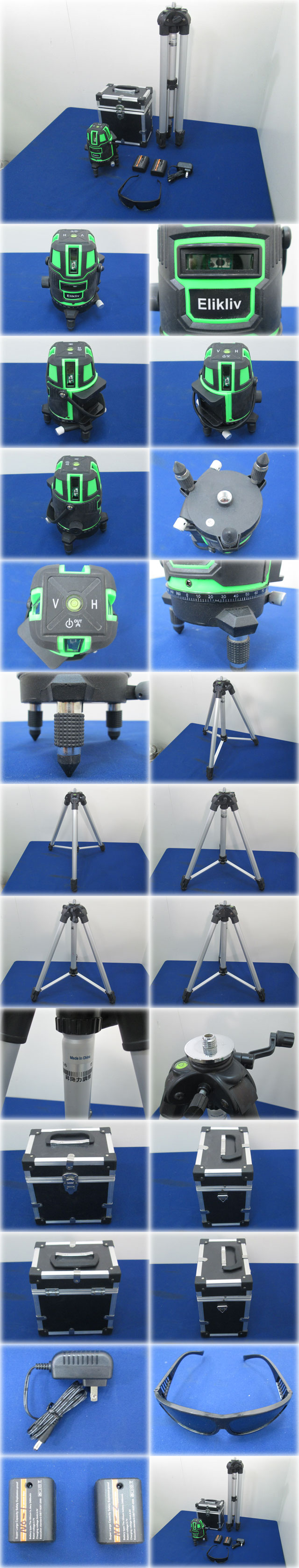 Elikliv レーザー墨出器・三脚セット グリーンレーザー 5ライン(垂直4・水平1) 屋内・屋外兼用 バッテリー/ACアダプタ/ゴーグル/ケース付 收藏
