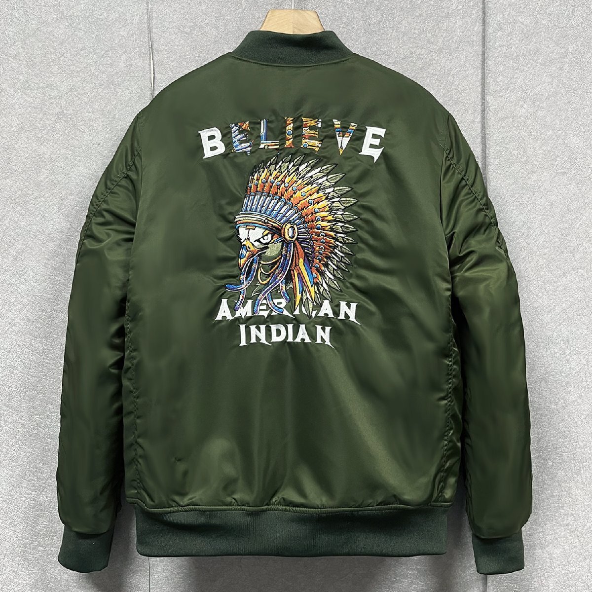 個性 フライトジャケット/MA-1 定価8万◆Emmauela・イタリア・ミラノ発◆保温 防風 INDIANS 豪華刺繍 中綿ジャケット アウター 2XL/52 收藏
