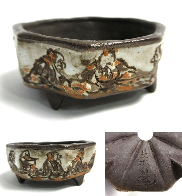 茶山作 盆栽鉢 間口約5.4cm 小品盆栽【説明欄に詳細写真有り】の出品です。