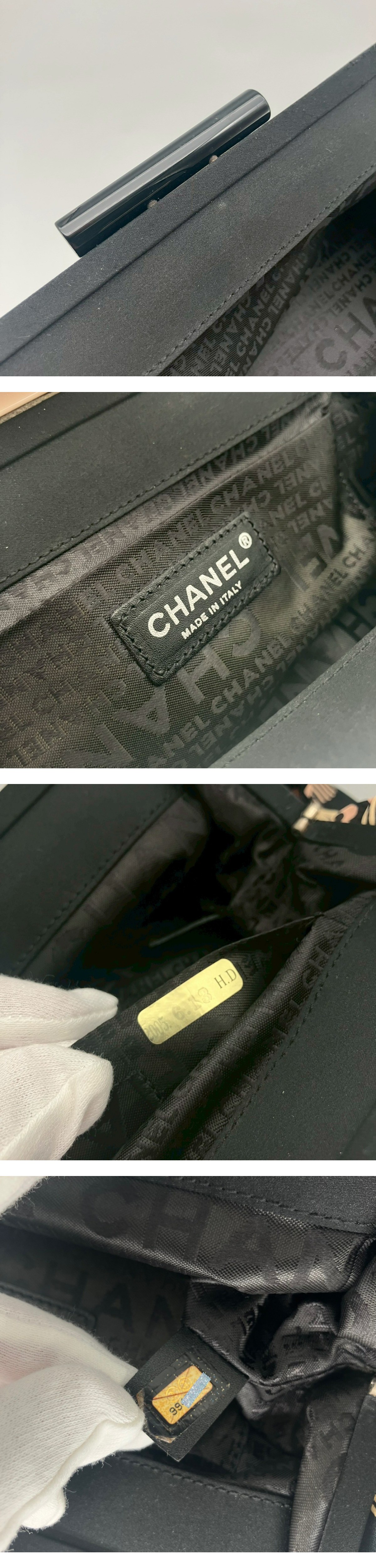 CHANEL (シャネル) ヴィンテージ カメリア フラワー ココマーク がま口 シルク クラッチバッグ ハンドバッグ 收藏