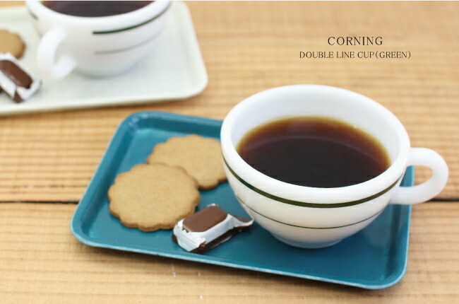 カップ CORNING コーニング DOUBLE LINE CUP(GREEN) アメリカ ミルクホワイト 耐熱ガラス 收藏