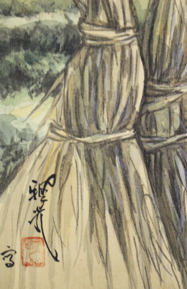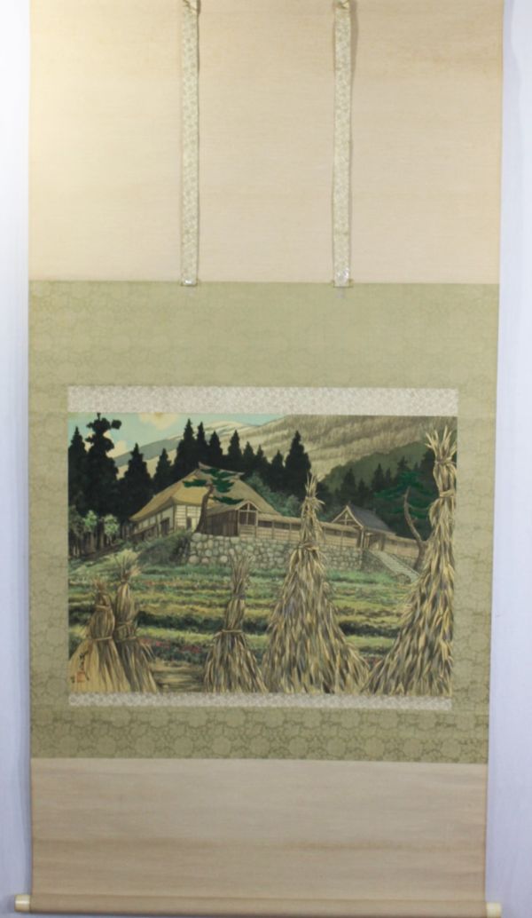 《真作》★雅光【ふるさと】*共箱.日本画.尺八.横幅*古民家.庭先*田舎風景画*郷愁*藁*丁寧に描かれた秀作*[桃] 收藏