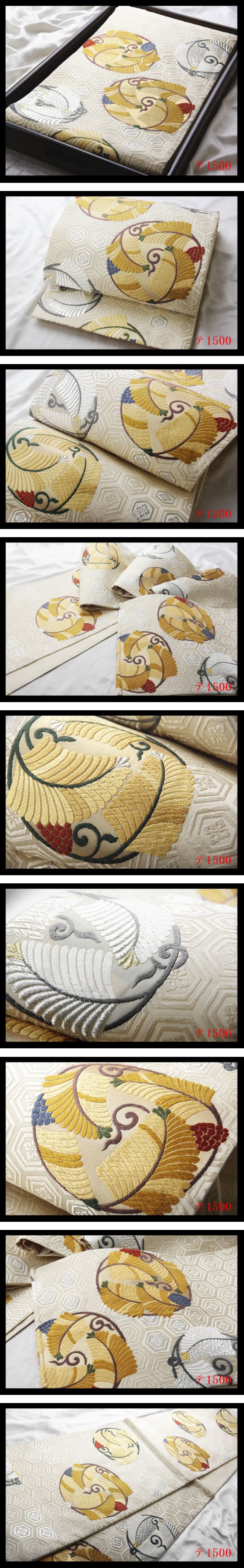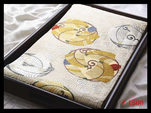 蔵【テ1500】厳選逸品 唐織 松葉紋 象牙色地 気品豊かに 正絹純金糸六通高級美術袋帯 ◇検◇簪着物名古屋帯和装小物帯締め 收藏