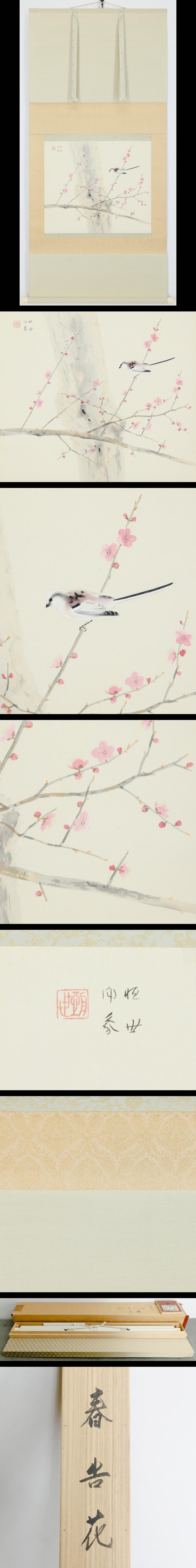 【真作】【WISH】堂本印象「春告花」日本画 掛軸 夏生軒(堂本四郎)鑑定箱 二重箱 ◆紅梅枝に尾長鳥 〇文化勲章 帝室技芸員 #25100059 收藏