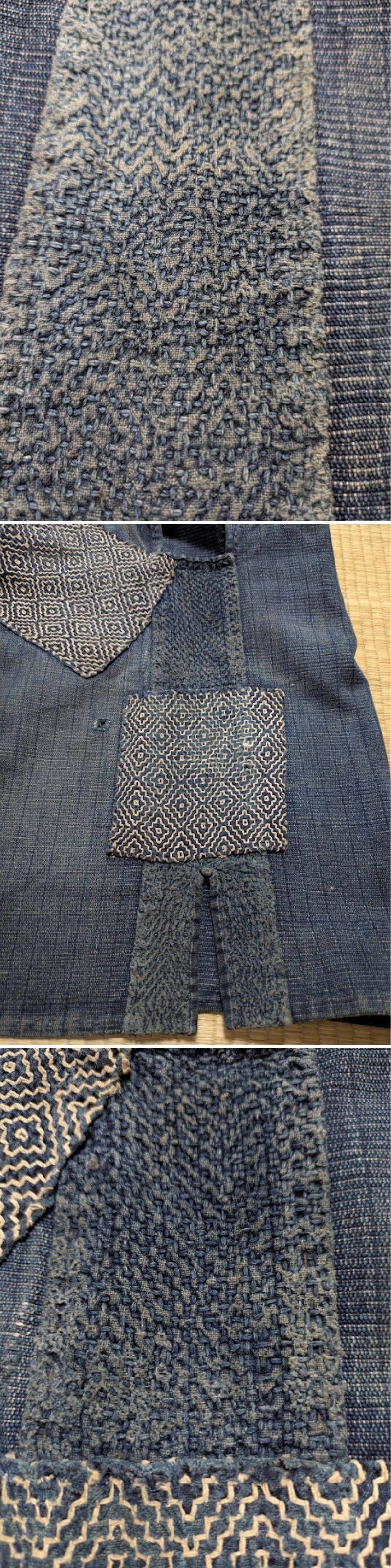 時代物◆庄内刺し子◆裂織 野良着◆裂き織り◆藍染め手織り木綿◆襤褸◆古布◆土蔵に眠っていました。昔の裂き織りの野良着です。藍木綿の裂き織りに2種類の刺し子が施されています。経年による汚れ擦れ色落ち傷み等ある部分あり。(画像参照)味があり 擦れ感がよい雰囲気です。◆サイズ・・着丈約79,5cm 身幅約54cm。このまま着用できますが、リメイクや材料としてもどうぞ。時代物ということをご理解頂ける方宜しくお願いいたします◆xvpbvx |