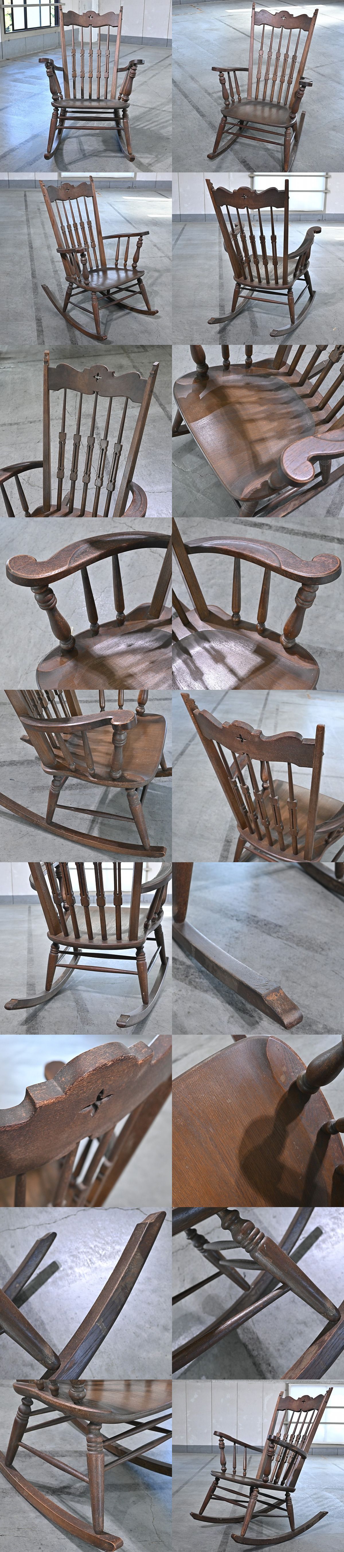 永田良介商店「スカシ型」ロッキングチェア オーク無垢材 安楽椅子 アンティーク風 クラシカル リクライニングチェア 肘掛 神戸家具 透かし 收藏
