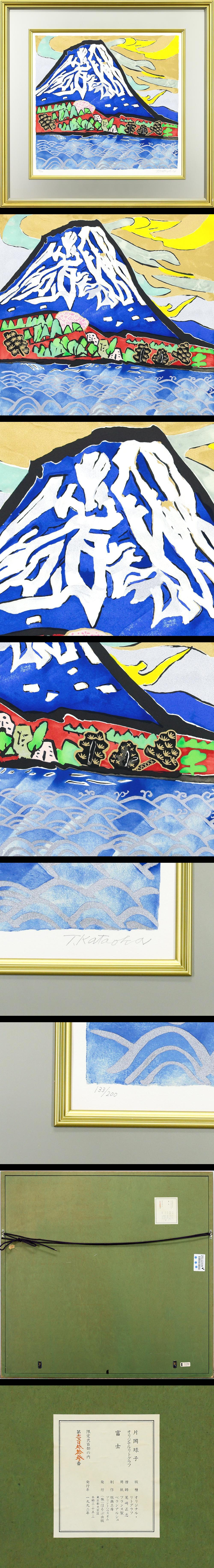 【真作】【WISH】片岡球子「富士」リトグラフ 約10号 直筆サイン 証明シール ◆力強い群青富士 〇文化勲章 文化功労者 #25112239 收藏