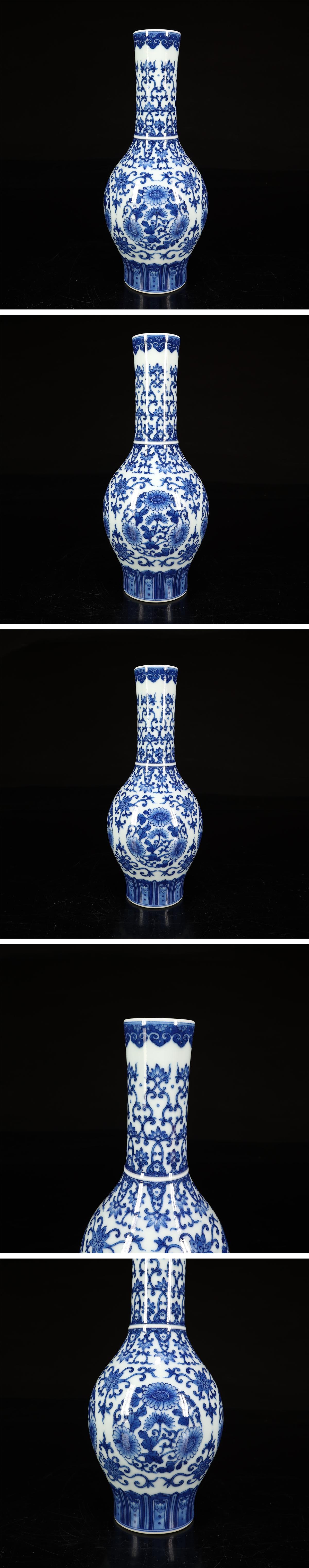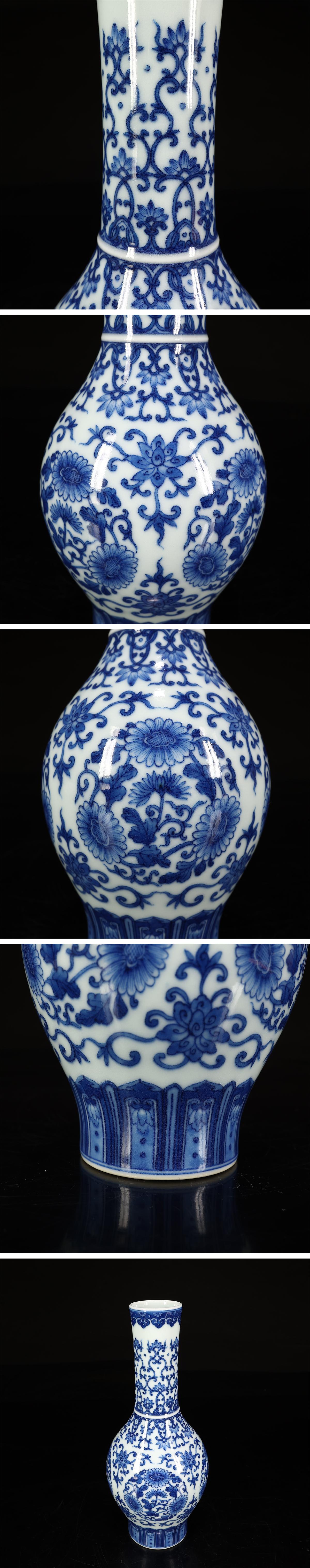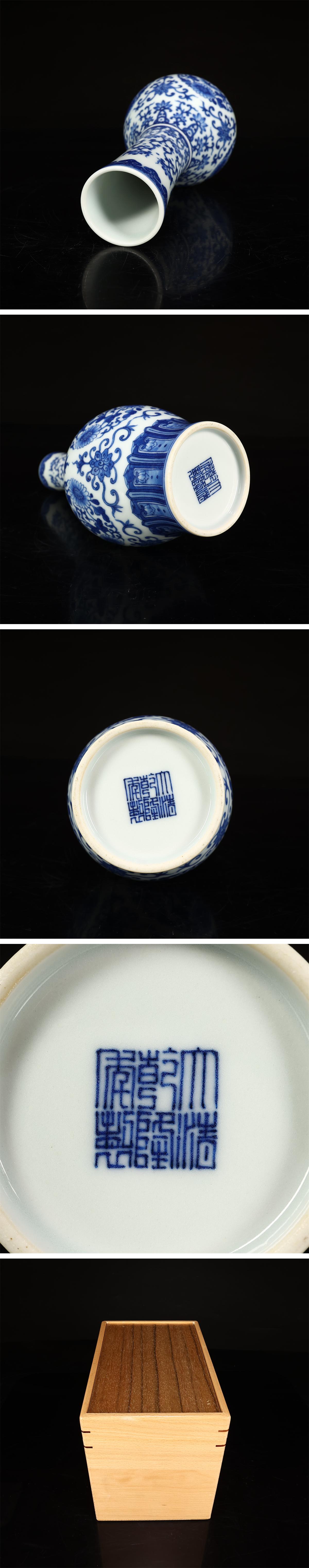 【吉】CL279 唐物 【大清乾隆年製】 官窯青花唐草紋 花瓶 高20㎝/極美品! 收藏