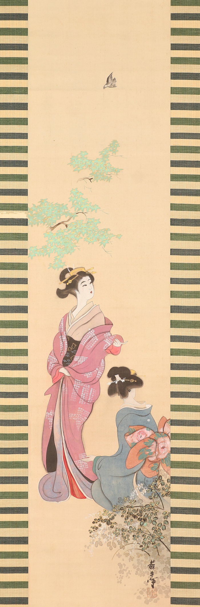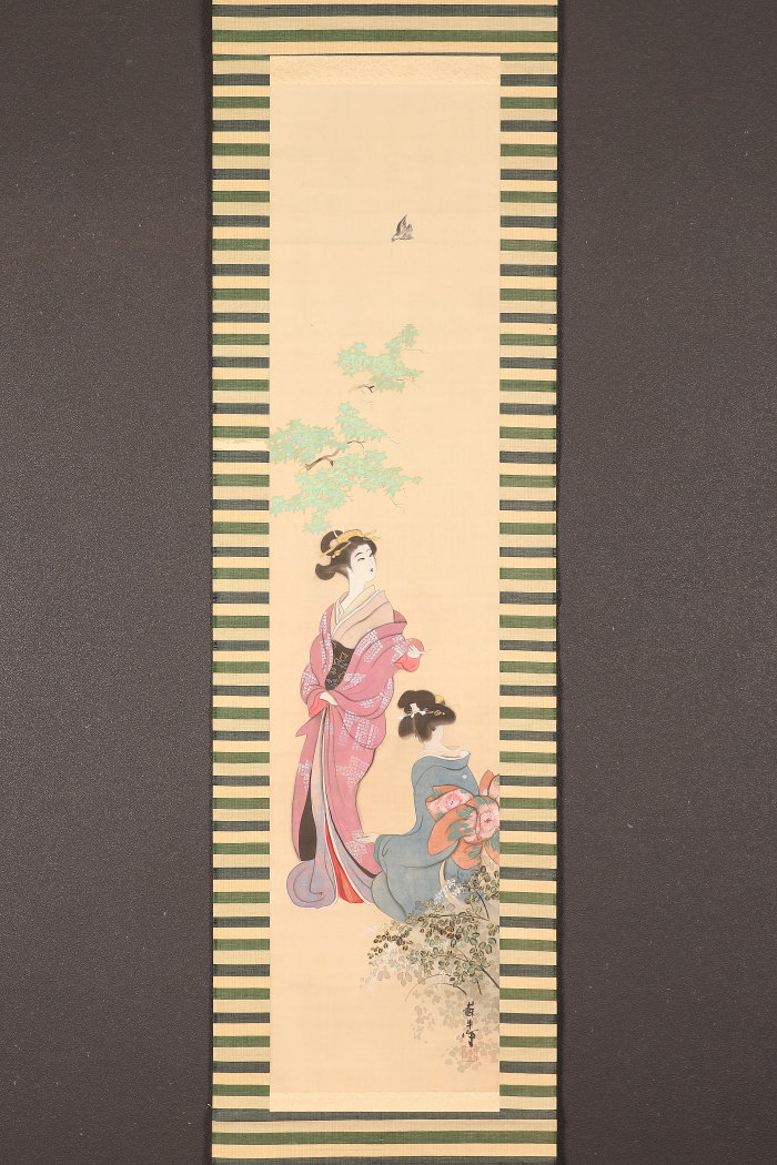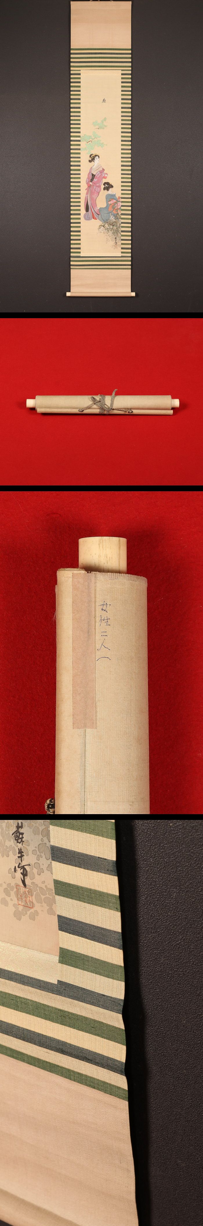 【模写】【伝来】大阪画人特集 am7685〈谷本蘇牛〉青楓二美人図 日本画家 大阪の人 收藏