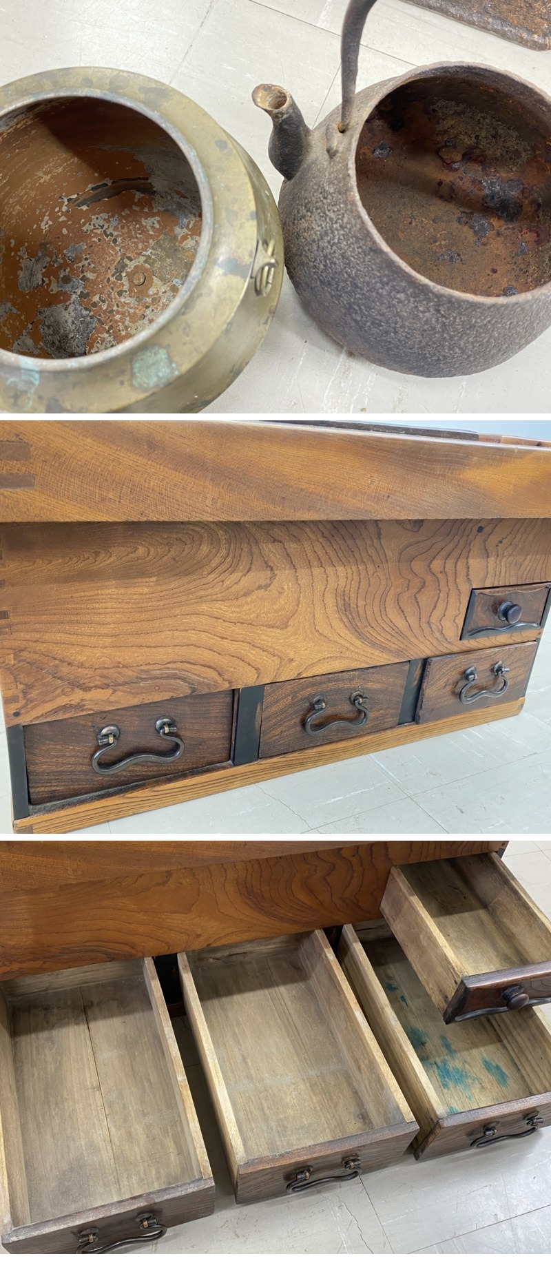 | ◇商品名◇ | i1926 関西火鉢 引き出し 囲炉裏 テーブル 全幅83cm 付属品有り 茶道具 和家具 | ||||||||||||