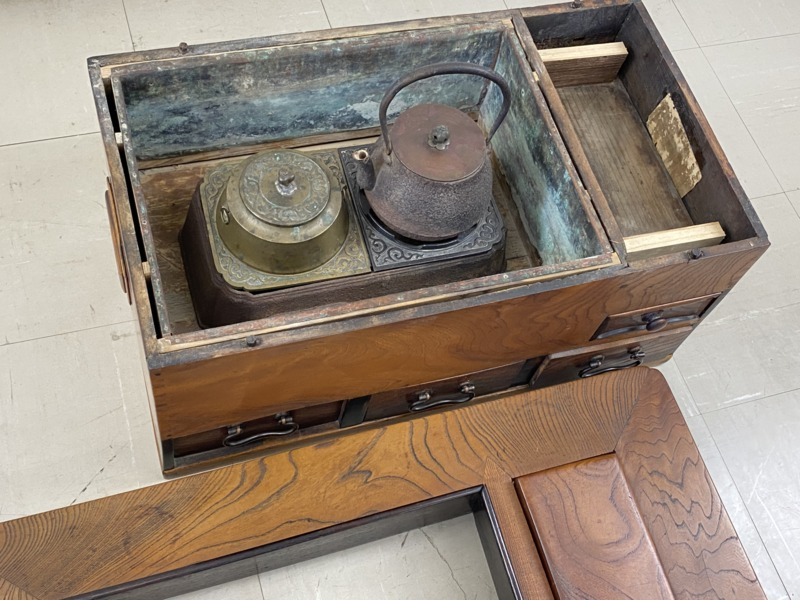 i1926 関西火鉢 引き出し 囲炉裏 テーブル 全幅83cm 付属品有り 茶道具 和家具 收藏