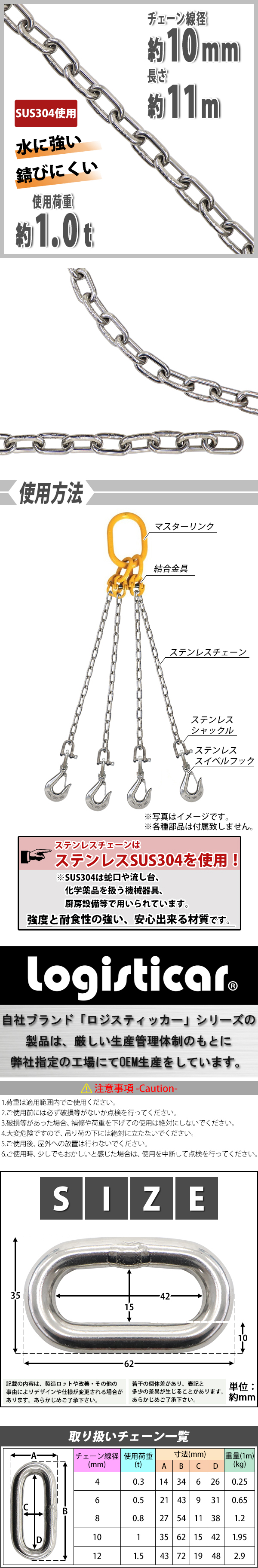 送料無料 ステンレスチェーン チェーン 線径約10mm 使用荷重約1t 約1000kg 約11m SUS304 JIS規格 ステンレス製 鎖 くさり 吊り具 チェイン 收藏