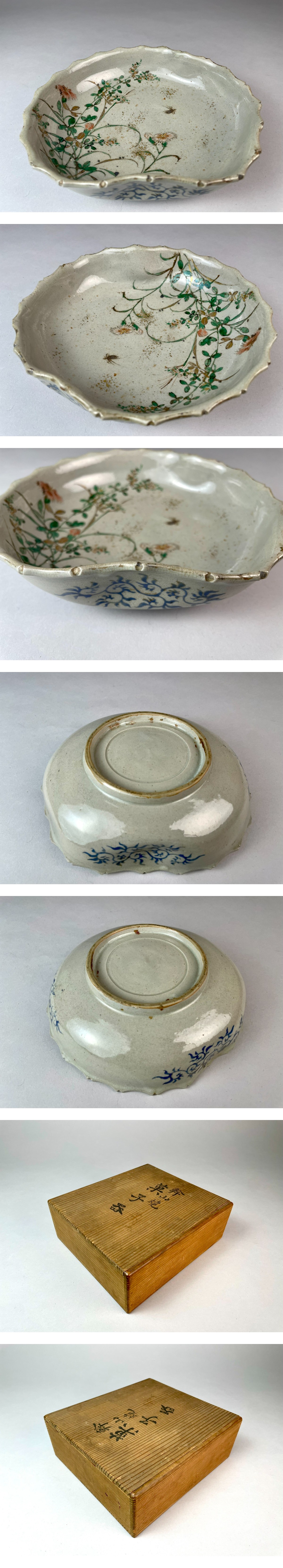 A760 幹山伝七 幹山焼 菓子器 共箱付 花文様 京焼 京菓子器 伝統工芸 色絵 陶器 茶道具 和食器 工芸品 骨董品 コレクション 收藏