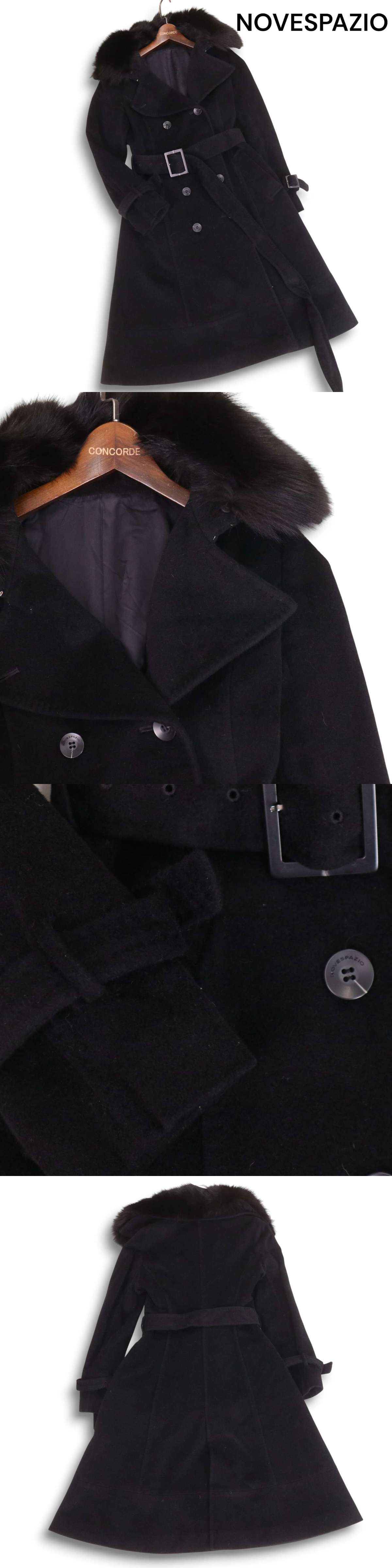 NOVESPAZIO ノーベスパジオ 秋冬 ブルーフォックス ファー♪ ウール アンゴラ トレンチ コート Sz.36 レディース 黒 日本製 收藏