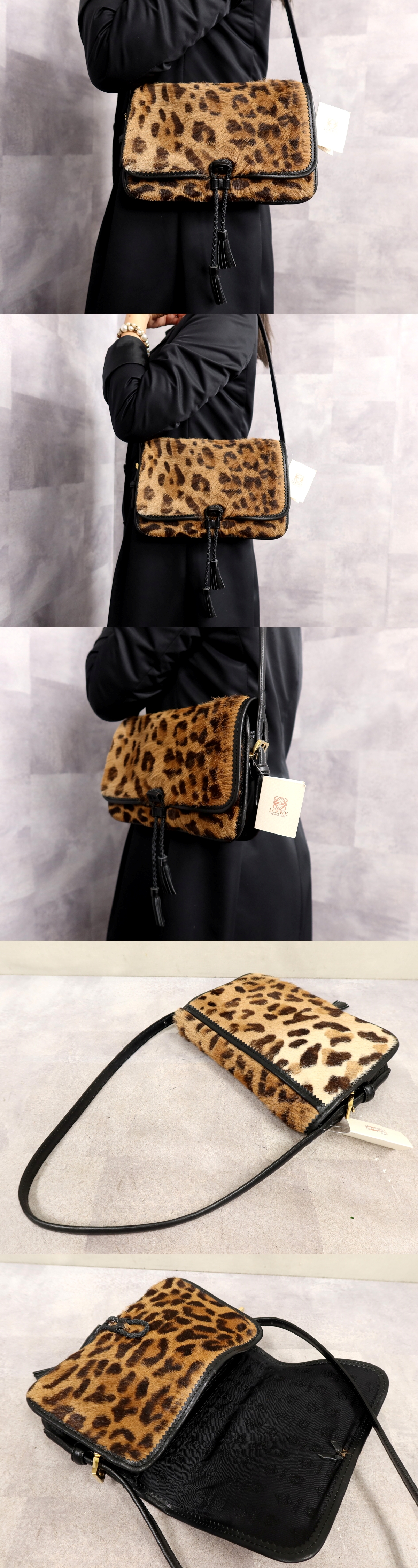 ●超美品●LOEWE ロエベ●タッセル●レオパード柄●リアルファー カーフ レザー 本革●ショルダー バッグ●黒 ブラウン●G金具●Js63478 收藏