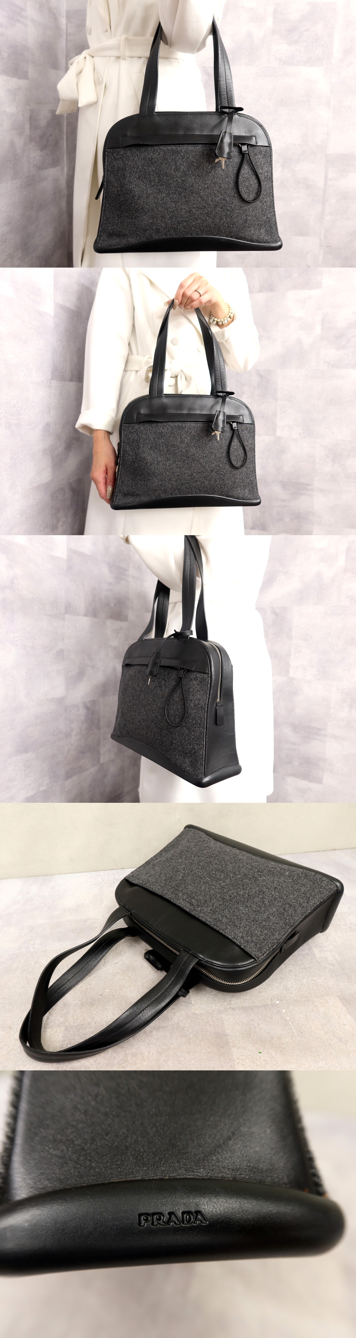 ●超美品●PRADA プラダ●ウール カーフ レザー 本革●トート バッグ●黒●シルバー金具●腕掛け●イタリア製●B5 収納 かばん●Js63410 收藏