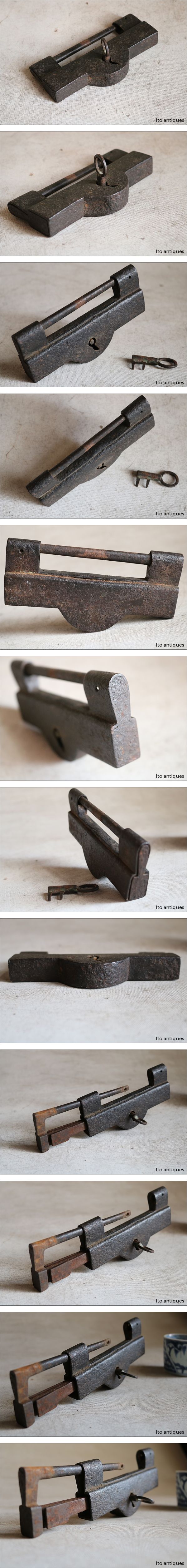 【伊董】C183.古民芸!アンティーク!金属工芸!鉄味が良い古い錠前鉄製南京錠鍵付き江戸 #錠 #阿波錠 #因幡錠 #古道具 收藏