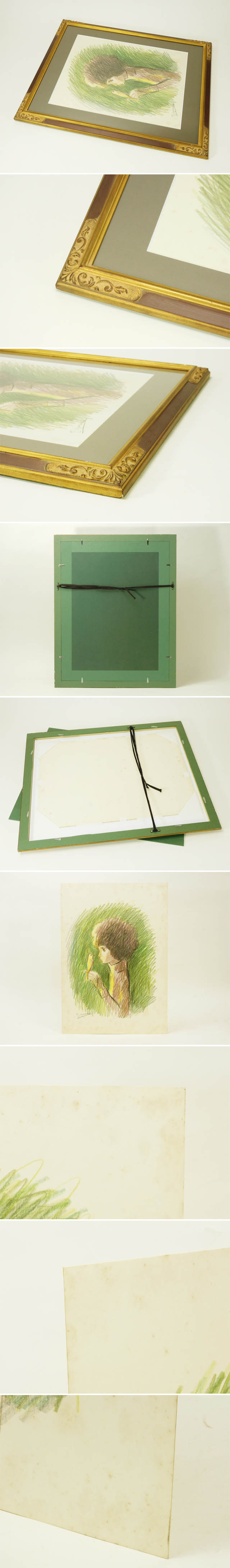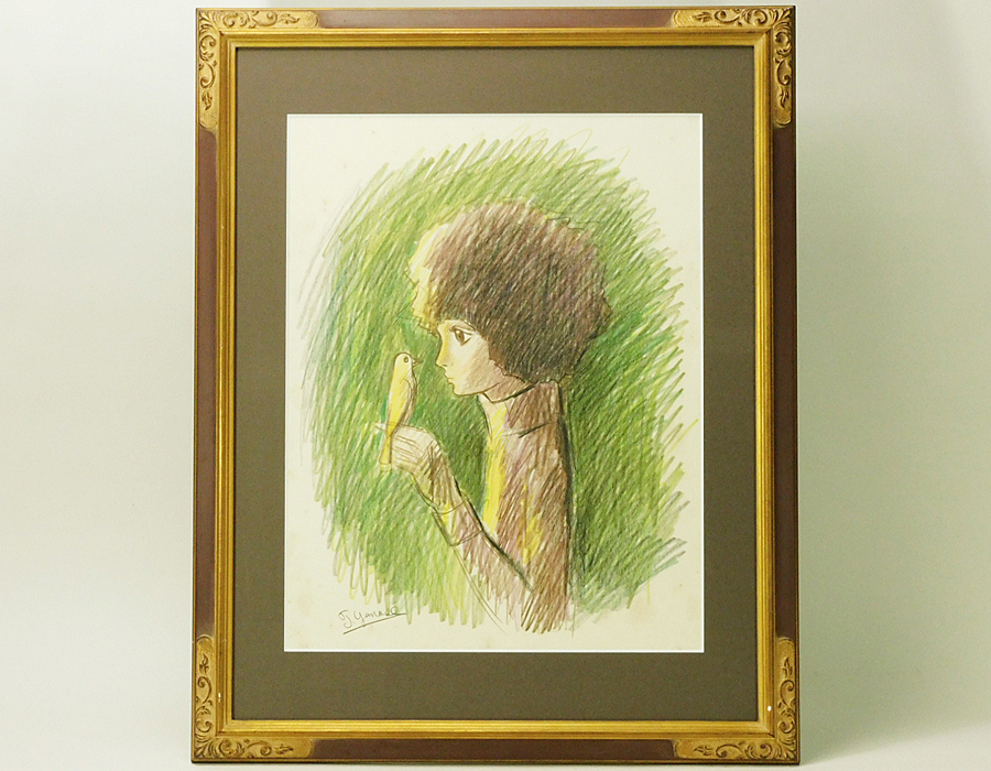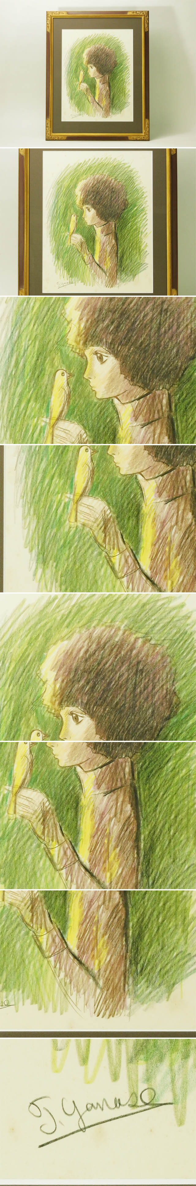 やなせたかし 鳥と少年 パステル画 原画 厚紙 額装 アンパンマン原作者 s25120406 收藏