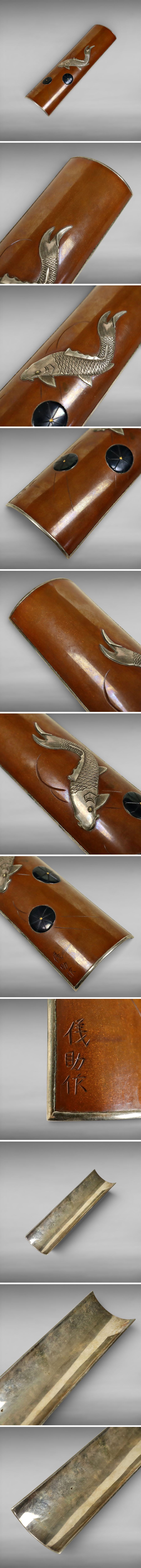 明治期 金工師 名工杉本儀助 在銘 金銀赤銅四分一象嵌 彫金 銀被 蓮鯉 茶合 茶道具 古美術 骨董品 2407vbeyN 收藏