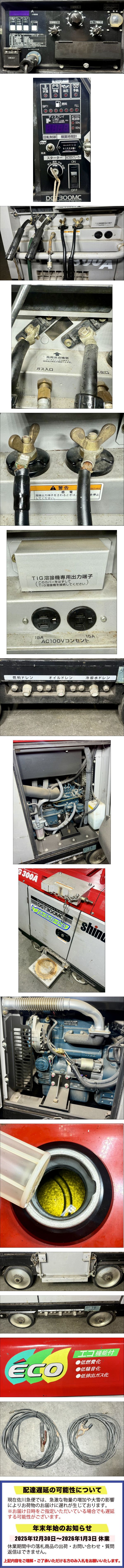 | 状態 | エンジン始動/発電確認動画YouTubeリンク 溶接確認動画YouTubeリンク ※必ず動画を参照の上、ご入札のご検討をお願いします。 ※動画をご覧になって、状態をご理解いただける方のみご入札のご検討をお願いします。 ※現状セルにて始動します。 バッテリーは消耗品のため、 交換前提でお考えください。 ■本商品は中古品の為、細かな傷や汚れ等があります。 ■簡易動作の確認を行いました。詳細は動画を参照してください。 ■あくまでも簡易的な確認になる為、動画をよく見て頂き少しでも不安がある方は入札をご遠慮ください。 ■付属品も含め、画像に記載されているもので全てとなります。 ■現状でのお渡しとなりますのでご利用に当たり整備・修理などが必要になる場合がございます。 ■上記の内容をしっかり理解したうえで入札してください。 ※スムーズなお取引を目指しております。下記内容を必ずご確認ください※ ・当アカウントでは、落札後の使用方法・取付方法・サポートなどは行っておりません。 ・使用方法・修理方法・お手入れの仕方など専門的な知識の無い方は入札をお控え頂きますようお願い致します。 ・現状販売の中古品になります。説明・動画・画像より状態を判断できる方のみご入札下さい。 ・神経質な方や完璧な商品を求める方の入札はご遠慮下さい。 ・商品状態のランクにつきましては出品者の主観によりますので普遍的なものではございません。 出品者と落札者様の価値観の相違がある可能性がありますのでご了承いただくと共に、出品ランクに対するクレームや返品・返金対応は対応しかねます。 ★直接引取可能「東静岡駅付近」 ※直接配送はリフトをお持ちの会社様に限ります、その他の場合は最寄りの新潟運輸留めとなります |