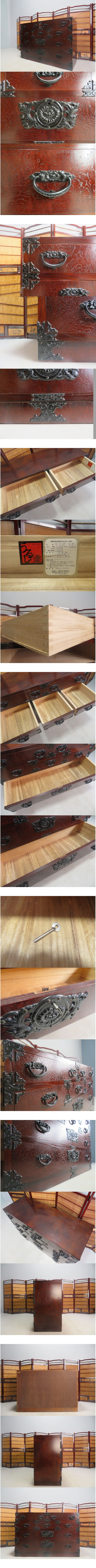美品 欅 漆塗り 艶あり 仙台箪笥 牡丹金具 中桐 姫箪笥 伝統工芸 民芸 太鼓鋲 鍵付き 検/岩谷堂 欅産業 收藏