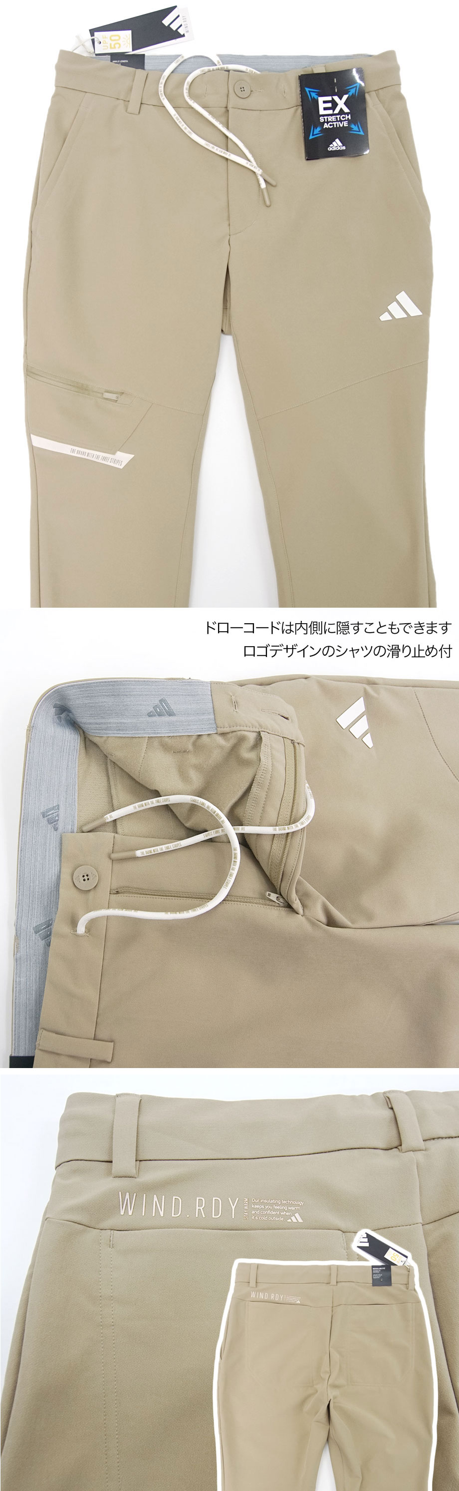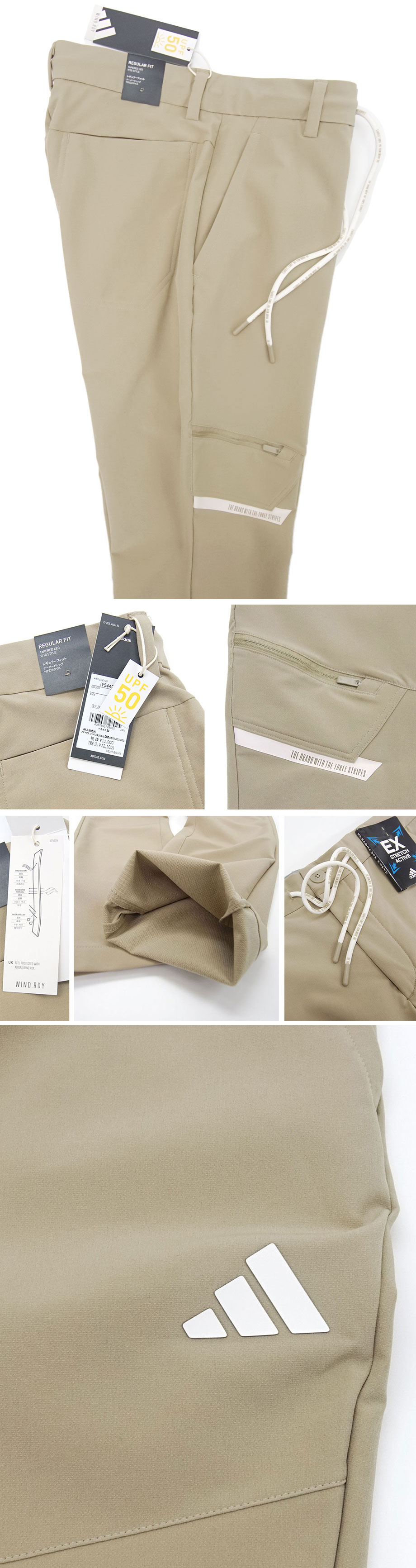 国内正規品(アディダスジャパン株式会社)。どんな動きにも滑らかにフィットする「EXストレッチ(スーパーストレッチ)」生地を採用し、動きをさまたげない抜群の伸縮性が魅力。ウエストもゴム入りで約10cm伸縮し快適な穿き心地。すっきりとしたテーパードシルエット。股下はアンクル丈(裾上げ済)で届いてすぐにご活用いただけます。秋や春のゴルフシーズンに特にお薦め。秋冬~春までの長いシーズンご活用いただける使い勝手の良い品です。相反する「撥水・透湿」に加え「防風」も実現した高機能【WIND. RDYテクノロジー】。透湿性があるため内側のムレは排出しつつ、撥水性もあり外からの雨などははじきます。強力なUVカット機能(UPF 50+)も備えます。ゴルフラインの製品ですがベーシックかつシンプルなデザインで日常使いのカジュアルにもご活用いただけます。ご家庭の洗濯機でお気軽に洗濯ができます。定価は税込12,100円の品。どうぞお見逃し無く。(並行輸入品ではなく、国内の大手スポーツショップや百貨店等で販売される国内正規品となります)