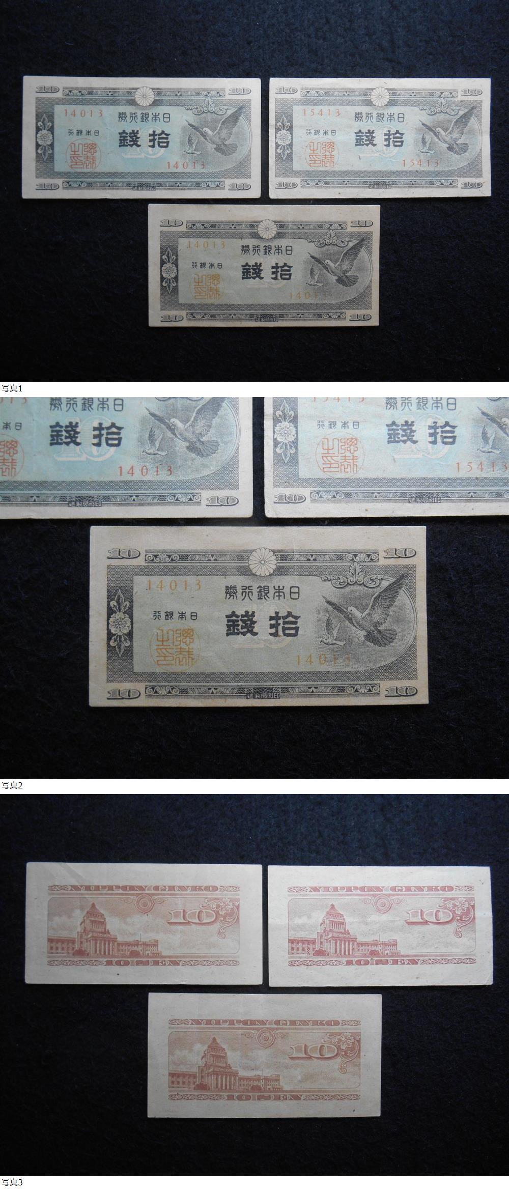| 旧紙幣 ハト10銭 3枚 B-0406 |
