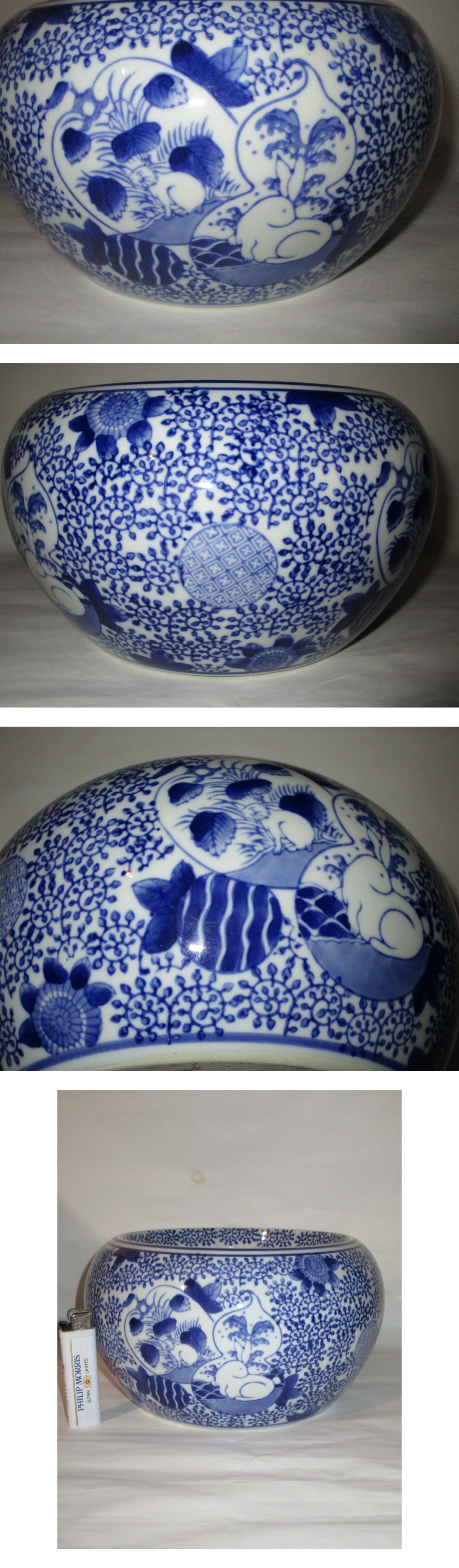 【昭和期】磁器製 兎(ウサギ)・瓢箪・蛸唐草・丸 紋 めだか鉢 金魚鉢 鉢 (高さ13cm) ●無傷● 收藏