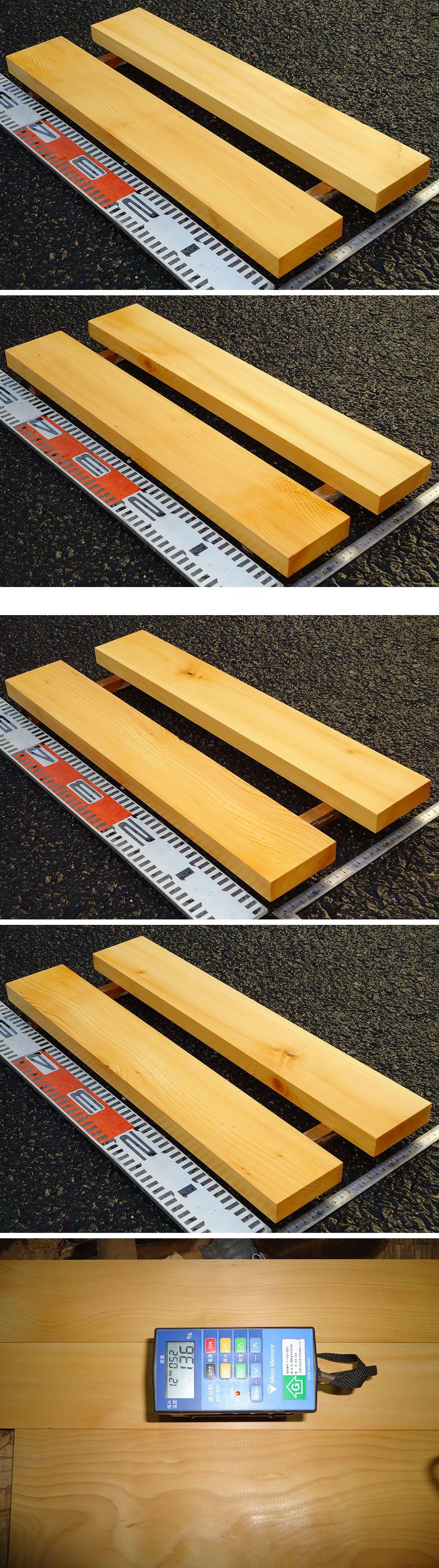 ・変色(1本片面)と節傷があります。乾燥によるヒビ、及び小さな虫食いを見落としている場合があります。
