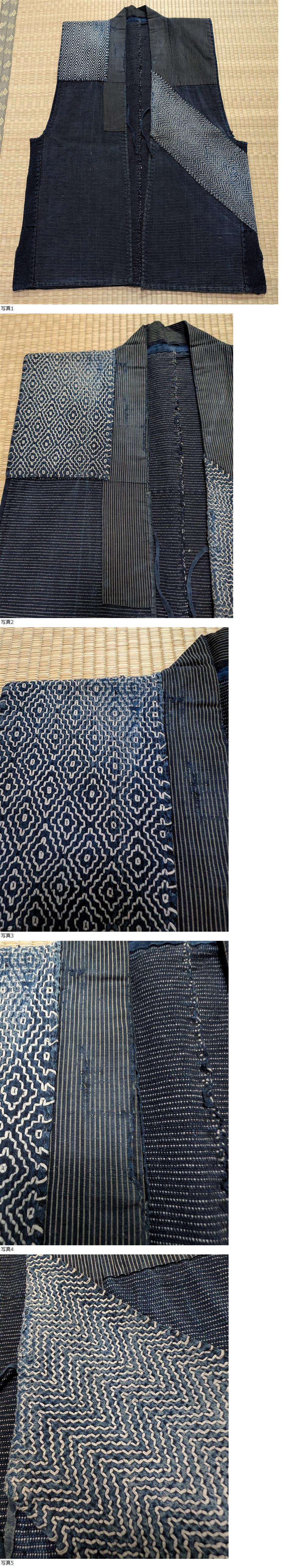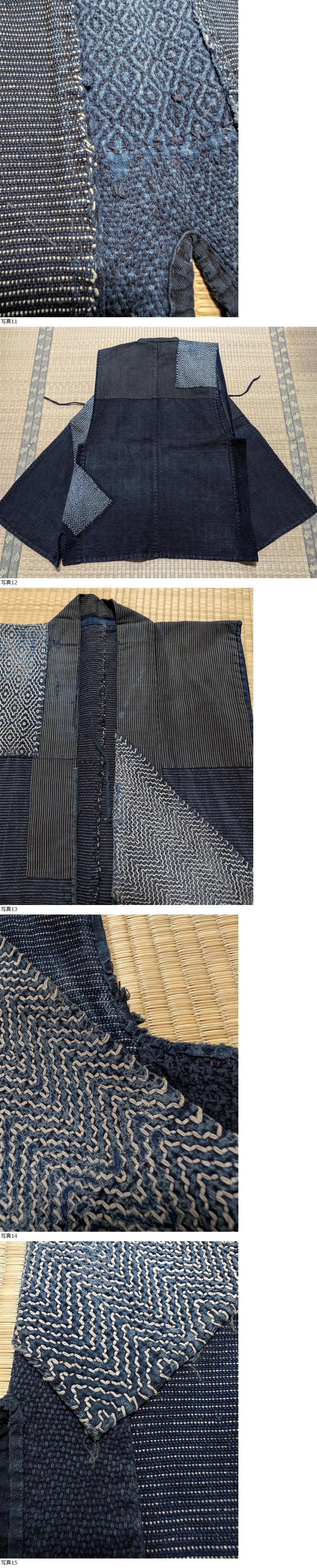 時代物◆庄内刺し子◆裂織 野良着◆裂き織り◆藍染め手織り木綿◆襤褸◆古布◆土蔵に眠っていました。昔の裂き織りの野良着です。藍木綿の裂き織りの側面に2種類の刺し子が施されています。また白い糸で刺されている2種類の刺し子模様が美しいです。経年による擦れ傷みや汚れ等ある部分あります。(画像参照)◆サイズ・・着丈約75cm。身幅約58cm。このまま着用できます。時代資料としてや、リメイクや材料としてもどうぞ。時代物ということをご理解頂ける方宜しくお願いいたします◆