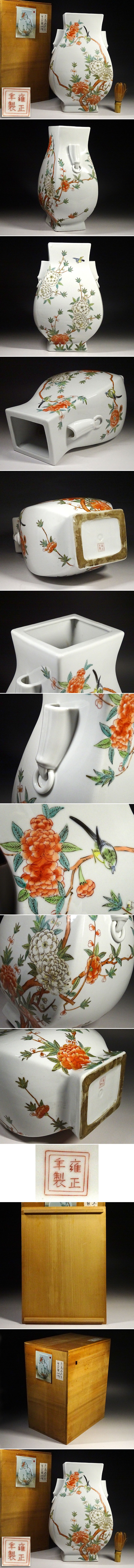 緑屋h■ 時代物 色絵 柿右衛門手 花鳥画 花瓶 高約37cm 木箱 雍正年数 i9/12-6403/25-2#120 收藏