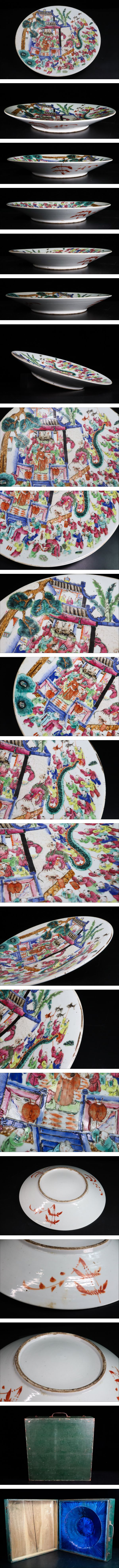 ◇雅◇ 中国美術 朝鮮 清時代 時代物 中国伝来 粉彩人物故事文皿 飾皿 幅34.5cm/1700g 色絵 染付 古美術 唐物骨董 /HK.25.12 [D158] V 收藏