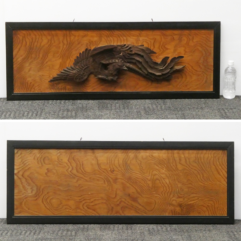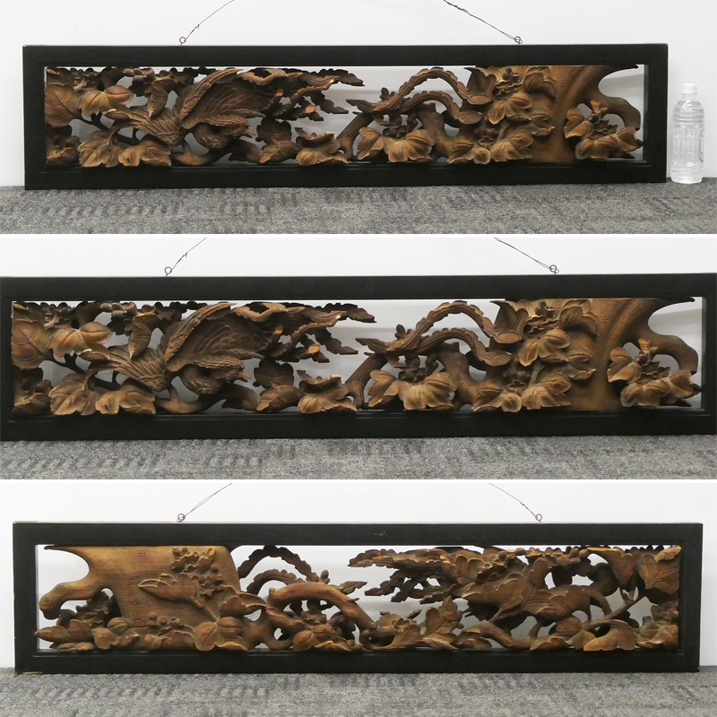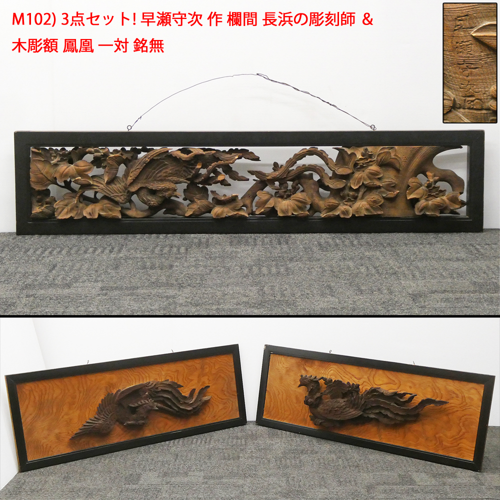 M102) 3点セット! 早瀬守次 作 欄間 長浜の彫刻師 & 木彫額 鳳凰 一対 銘無 / 木彫り 彫刻 壁掛け 建具 らんま [引取限定/大阪府門真市] 收藏
