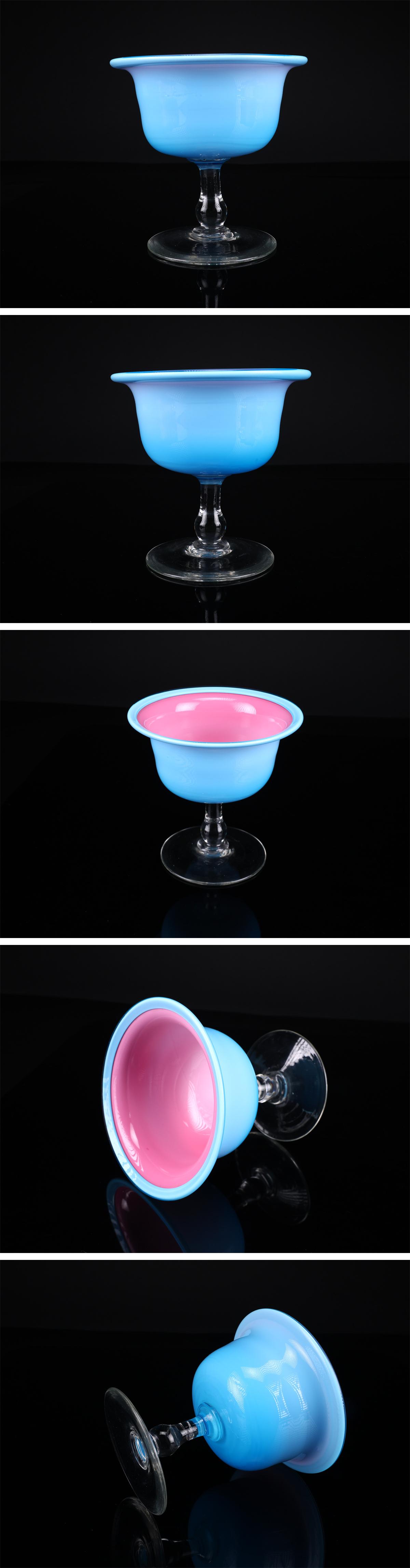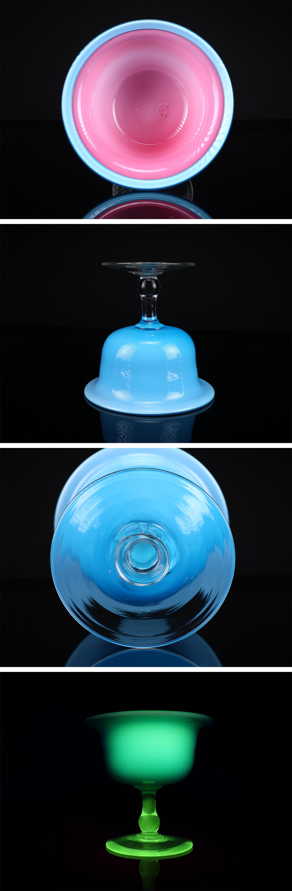 【吉】PD519 明治大正期 【ウランガラス】 外青内赤 氷コップ 大型 高15㎝ 径15.5㎝/美品! 收藏