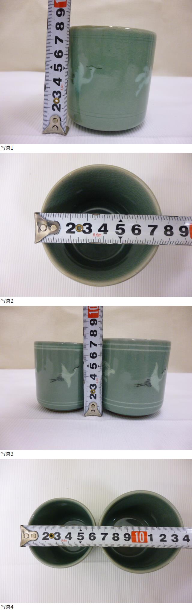【M46316】高麗青磁 湯呑 雲鶴文 ペア 湯呑 2客セット 木箱入り 2箱 青岩窯 竹山窯 未使用保管品 收藏