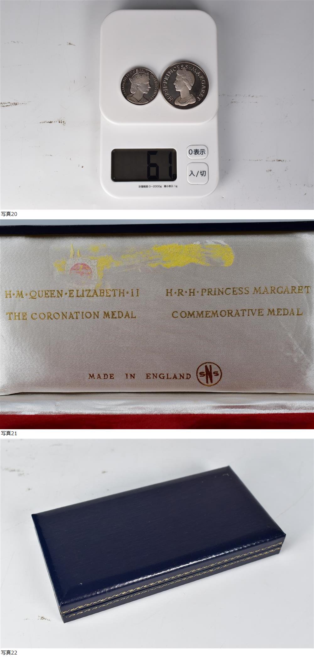 英国 1953年 エリザベス2世戴冠メダル 1969年 マーガレット王女記念メダル 銀メダル 銀製 371 SILVER 刻印 計約61g 收藏