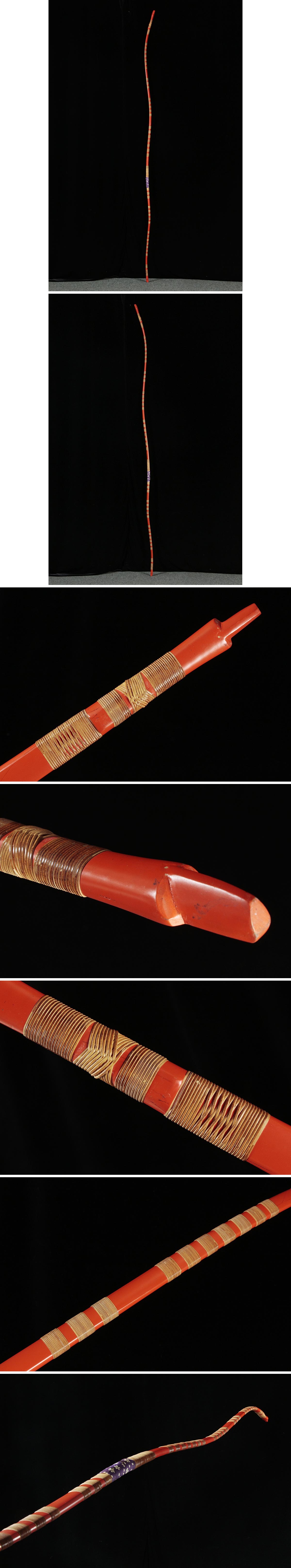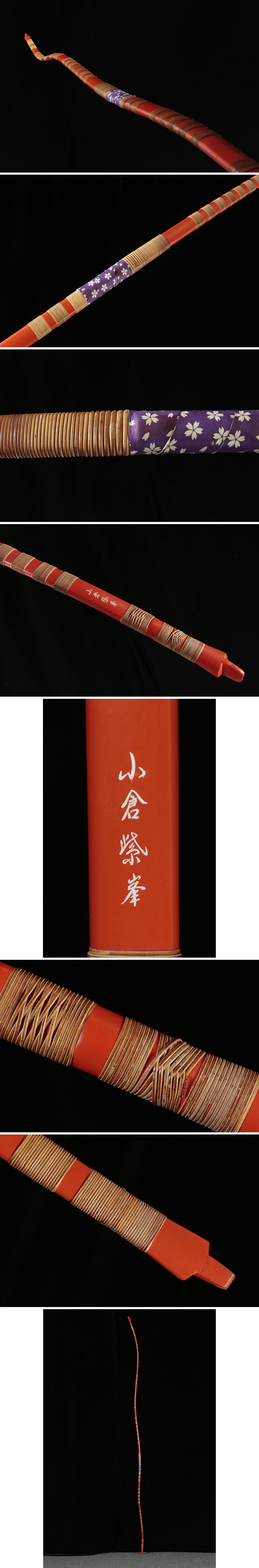 | ◆ 【小倉紫峯 作】洗朱塗 重籐弓・竹弓・和弓 全長226.5cm / 反228cm 重630g 三十六巻・古弓 武具 弓道具 武具 古美術 ◆