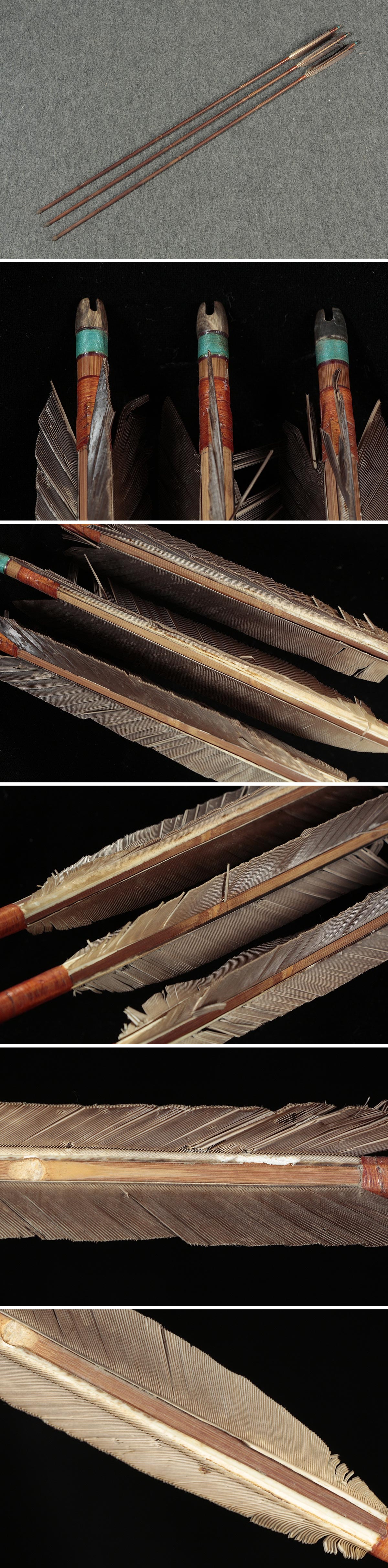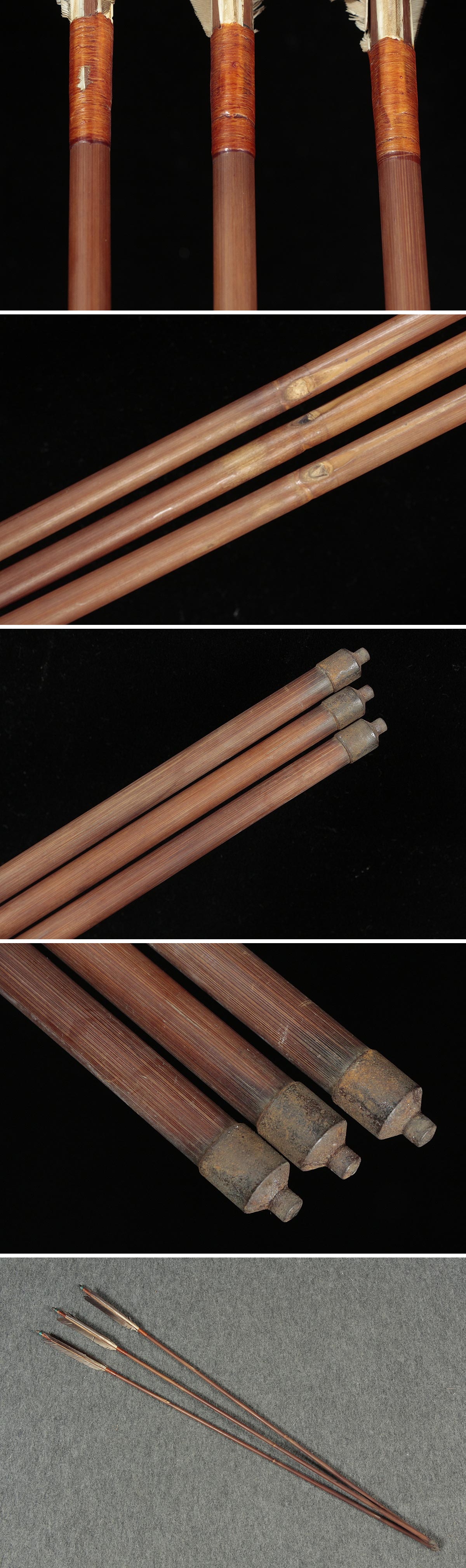 | ◆ 時代 古弓具 矢羽 三本一組 全長98cm ・竹矢・矢羽根・古矢 弓道具 時代武具 古美術品 ◆