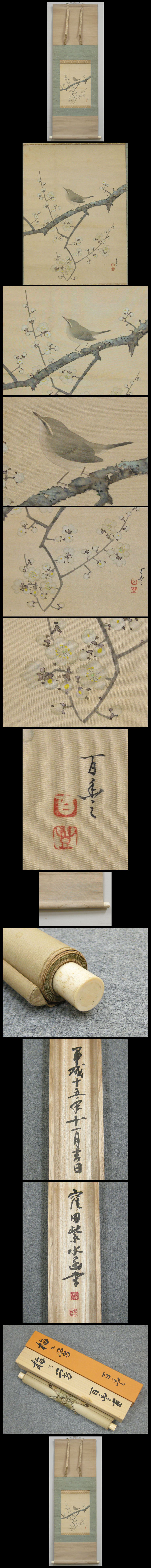 【心庵】掛軸 広田百豊 絹本 梅に鶯図/肉筆 極箱 真作 石川県 師:竹内栖鳳 C060 收藏