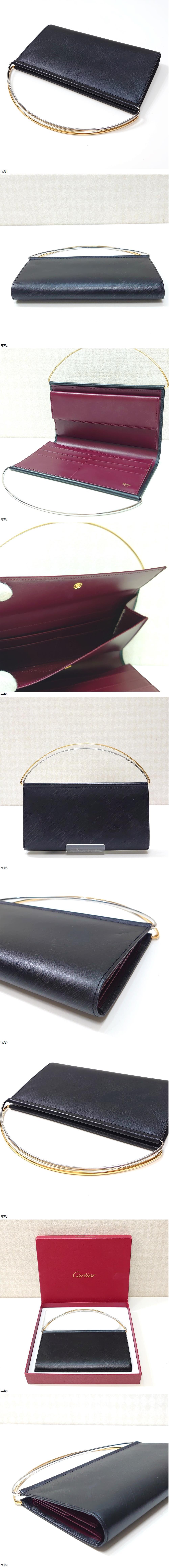 超美品 Cartier カルティエ ハンドバッグ トリニティ ウォレット レザー ブラック ロゴ総柄 ゴールド×シルバー レディース 二つ折 財布 收藏