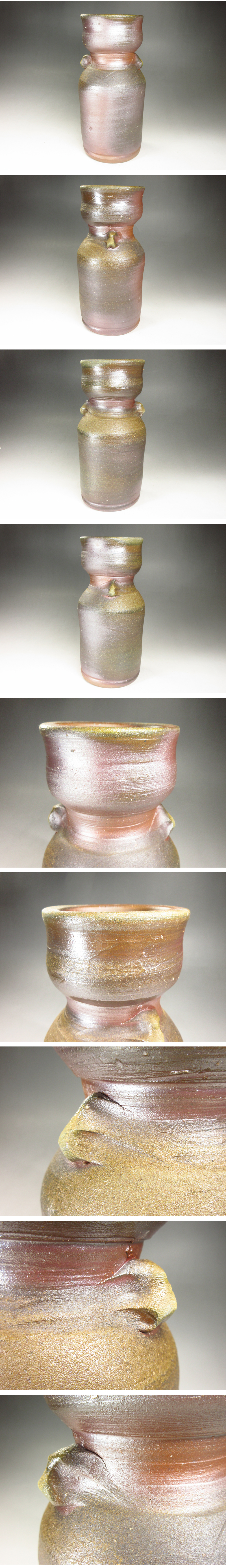 【漸】コレクター委託出品 晩年作 人間国宝『藤原雄』造 備前花入 共箱 共布 栞付き 備前焼 花瓶【HY3174】 收藏
