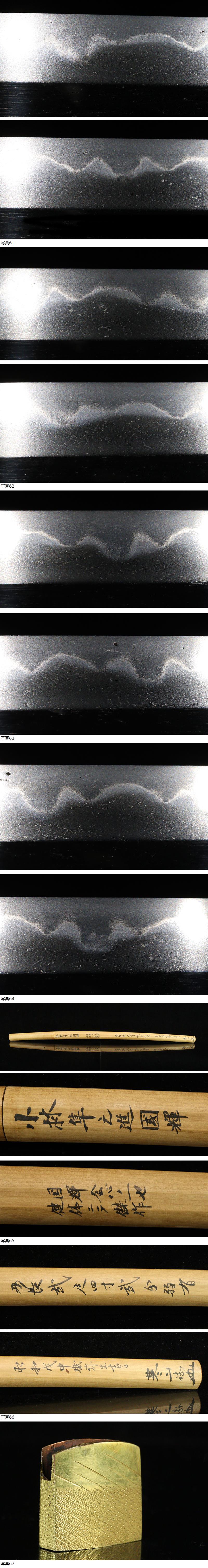 | ■刀剣のサイズ表示について 元幅・・・焼出し付近を測定しております 先幅・・・横手筋付近を測定しております 元重ね・・・焼出し付近の厚みを測定しております 先重ね・・・横手付近の厚みを測定しております (多少の誤差はご容赦ねがいます) ■銃砲類のサイズ表示について 全長・・・銃身先から台木尻までを測定しております 銃身・・・台木を除いて金属部分を測定しております (多少の誤差はご容赦ねがいます) 当社が出品する刀剣類は、入手した時の状態のまま出品しております。 ハバキ、小道具等も当社で調整したり付け替えたりはしておりませんので、合わせではないかというクレームは一切受け付けません。 刀身の疵も隠すことなく載せておりますので写真をよくご覧になってご入札ください。 疵に関して、説明がない等のクレームは一切受け付けません。 写真ではわかりにくい部分は質問欄やお電話でお問い合わせください。 但し、説明欄に表記のない刃切れに関してのみ返品やご相談に応じます。 ※ご落札しご購入されお手元に届いてから20日以内に 登録証に記載されている各都道府県の教育委員会にご連絡し 登録証の所有者変更を必ず行ってください | |||