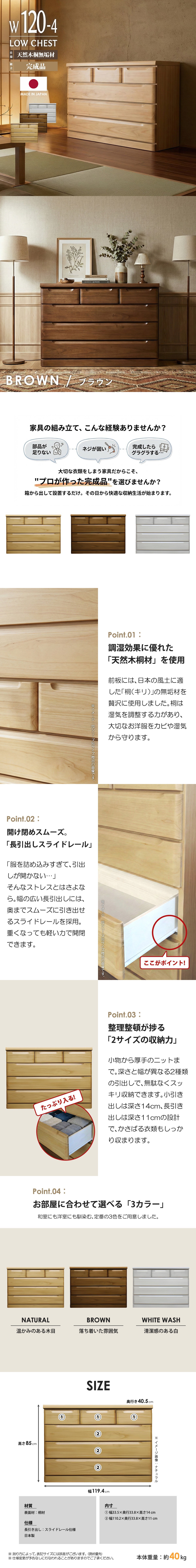 チェスト タンス ローチェスト たんす 木製 おしゃれ 衣装ケース 白 洋服タンス 4段 幅120cm ブラウン 收藏