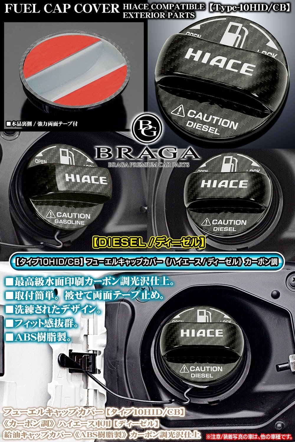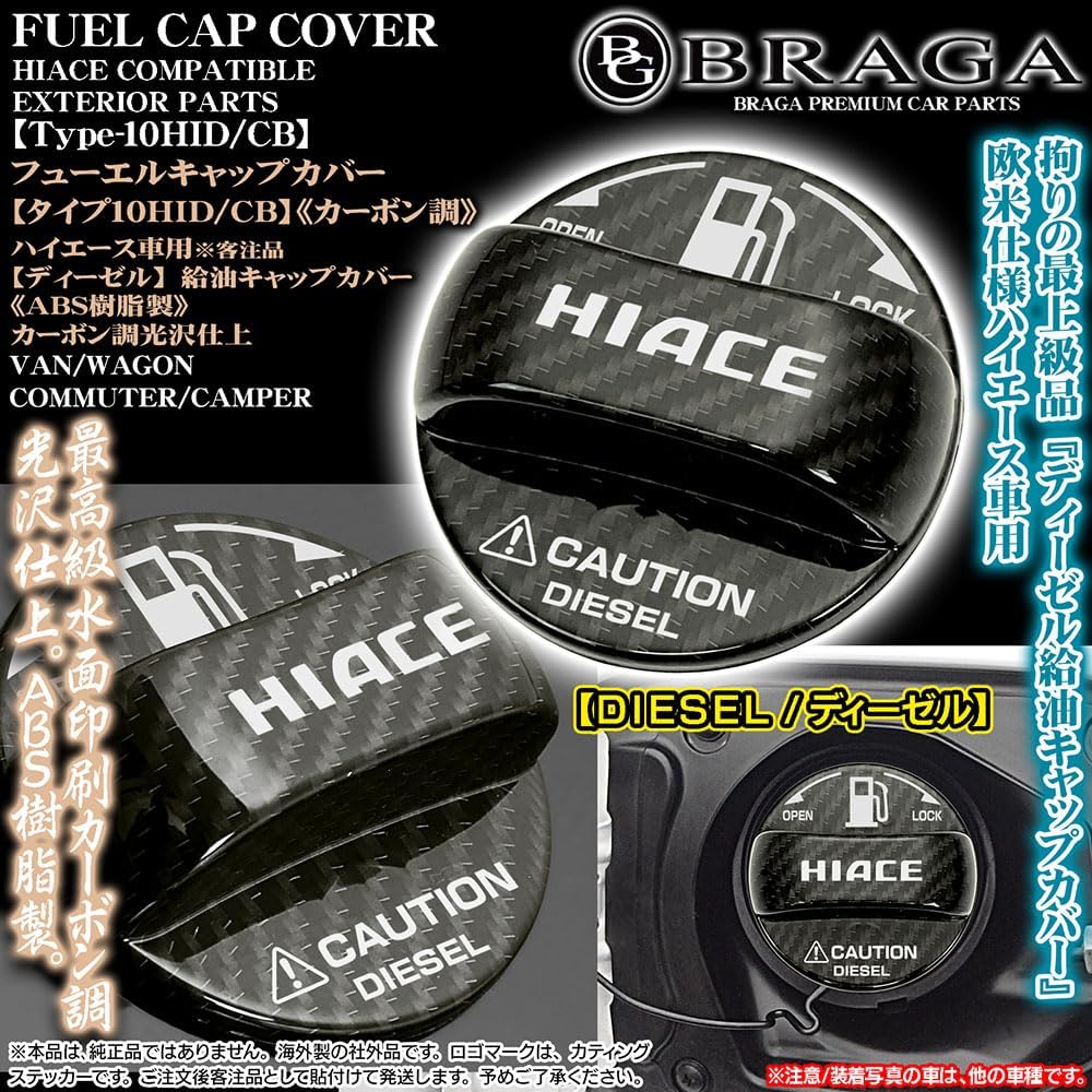 ハイエース ディーゼル[タイプ10HID/CB]給油 フューエル キャップカバー/HIACE DIESELステッカー/ABS製/カーボン調/ブラガ BG BRAGA