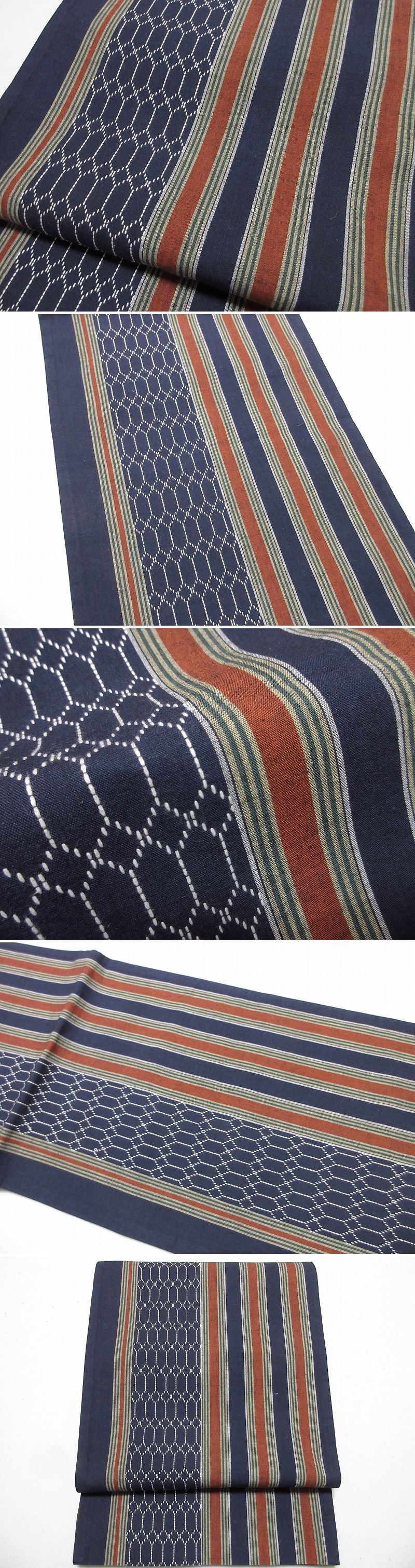 | 商品名 | ドークブア■全通柄京袋帯 綿 縦縞に刺し子 未使用 極上の逸品 C25 |